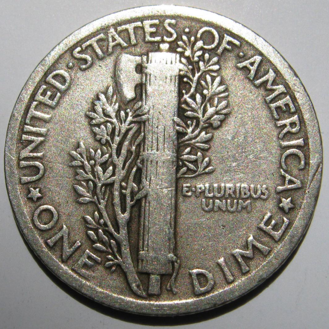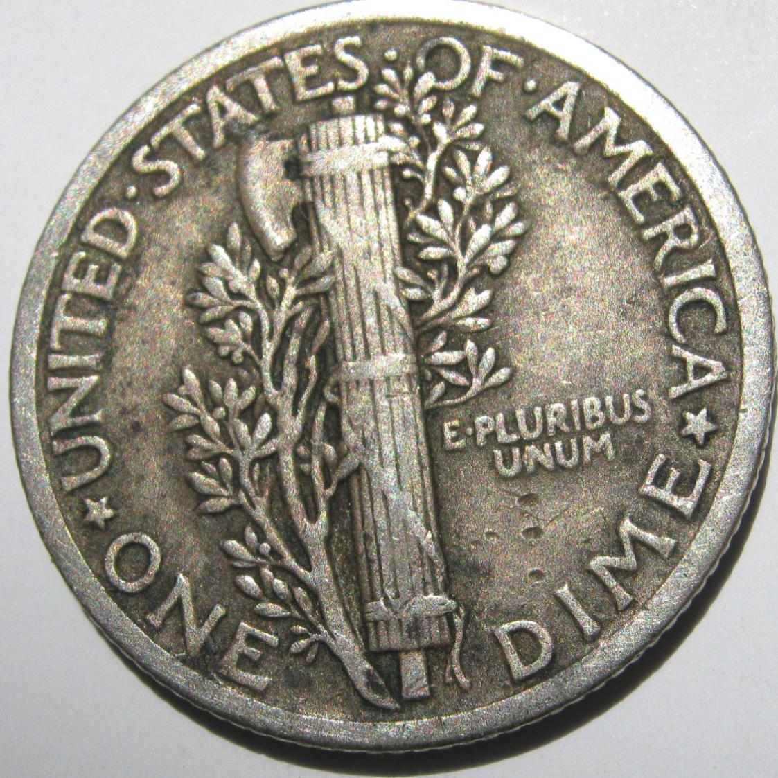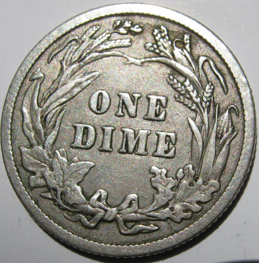 What marks on the back of the dime? All I see are big marks on the front of a dime, which were probably made by an old-fashioned rolling/counting machine. I have a few dimes that were ruined that way.