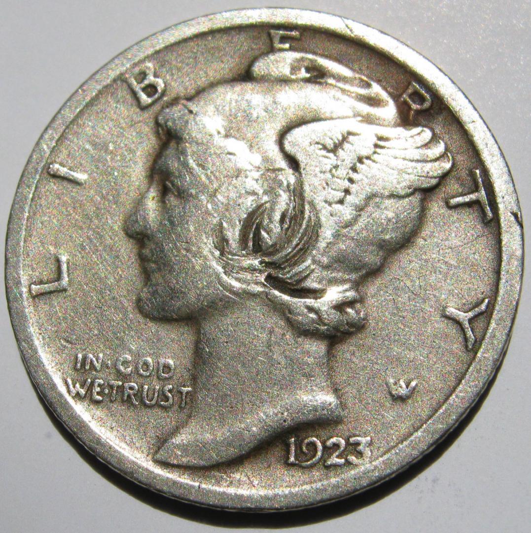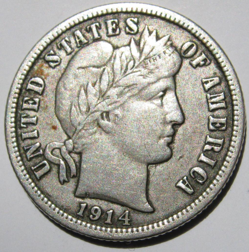 Just a few more: 1923 dime, obverse showing what i think is PMD, big mark in the center. 1914 barber dime