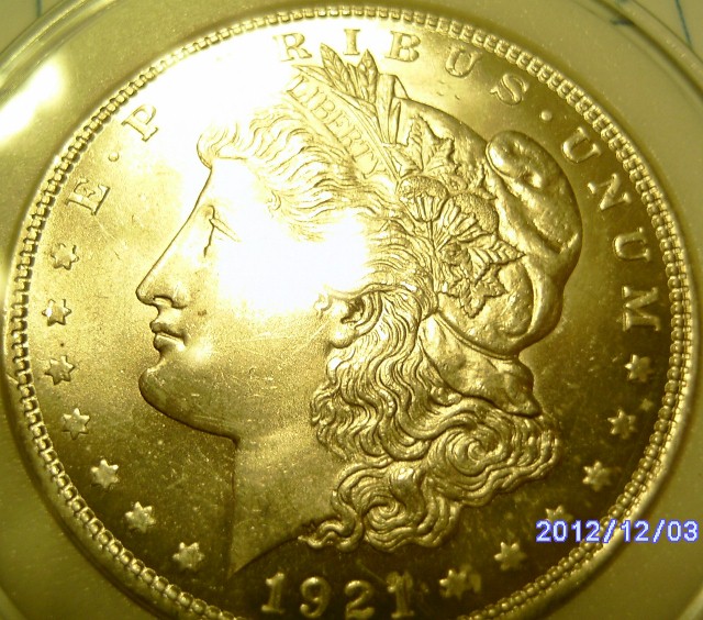 The photos certainly make it look like a polished coin, but if I squint past the glare, it does look like it has the detail of an uncirculated coin, and the first photo seems to show hints of luster. The 1921 Morgans are by far the most common, and least likely to carry a premium. Problem coins end up with "Unc" labels and high price tags because people like to get lots of money when they sell coins.