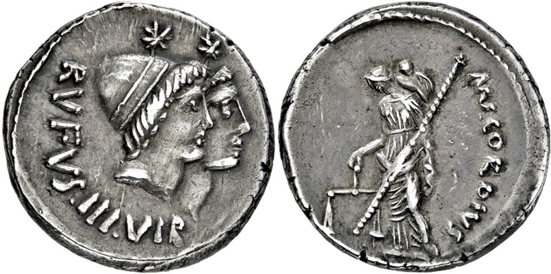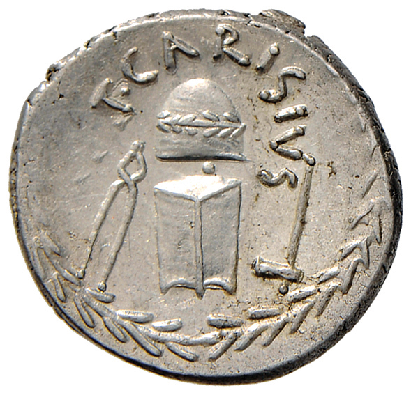 BM is simply describing their coins in accordance with Crawford, which is the current RR standard catalogue. Don't assume any independent thought by the BM in using that description. Crawford went against longstanding tradition in calling the disputed device a punch die. Before Crawford, the standard RR catalogue was Sydenham. Sydenham called the device "cap of Vulcan, laureate" (See Syd. #982). Before Sydenham, the standard RR catalogue was the British Museum Catalogue by Grueber. Grueber called the device "cap of Vulcan (pileus), laureate" (See BMCRR vol 1, 4056). Barfeldt has been previously mentioned. So, there are plenty of scholars besides the blogger and me who think it's a cap of Vulcan. Incidentally, that Cordius Rufus denarius with the banded cap was minted circa 46BC, same year as the Carisius that we're discussing. Edit: I will add one more scholar of the past who appears to be in your corner (if my junior high school French serves me well) - Babelon identifies it as a die, I think.
