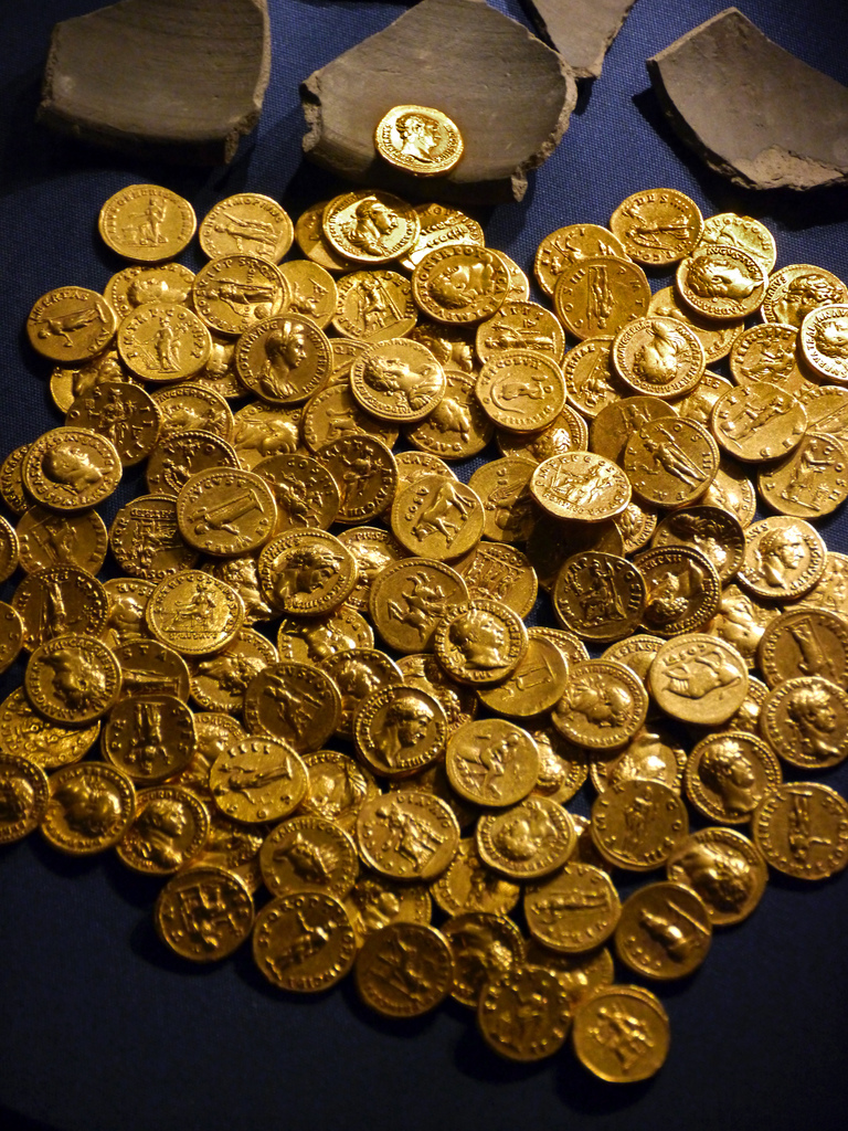 Talking about a pile of coins: found in Trier in 1993 during the course of excavation work for a new garage. 2650 aureii...
