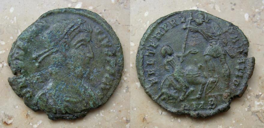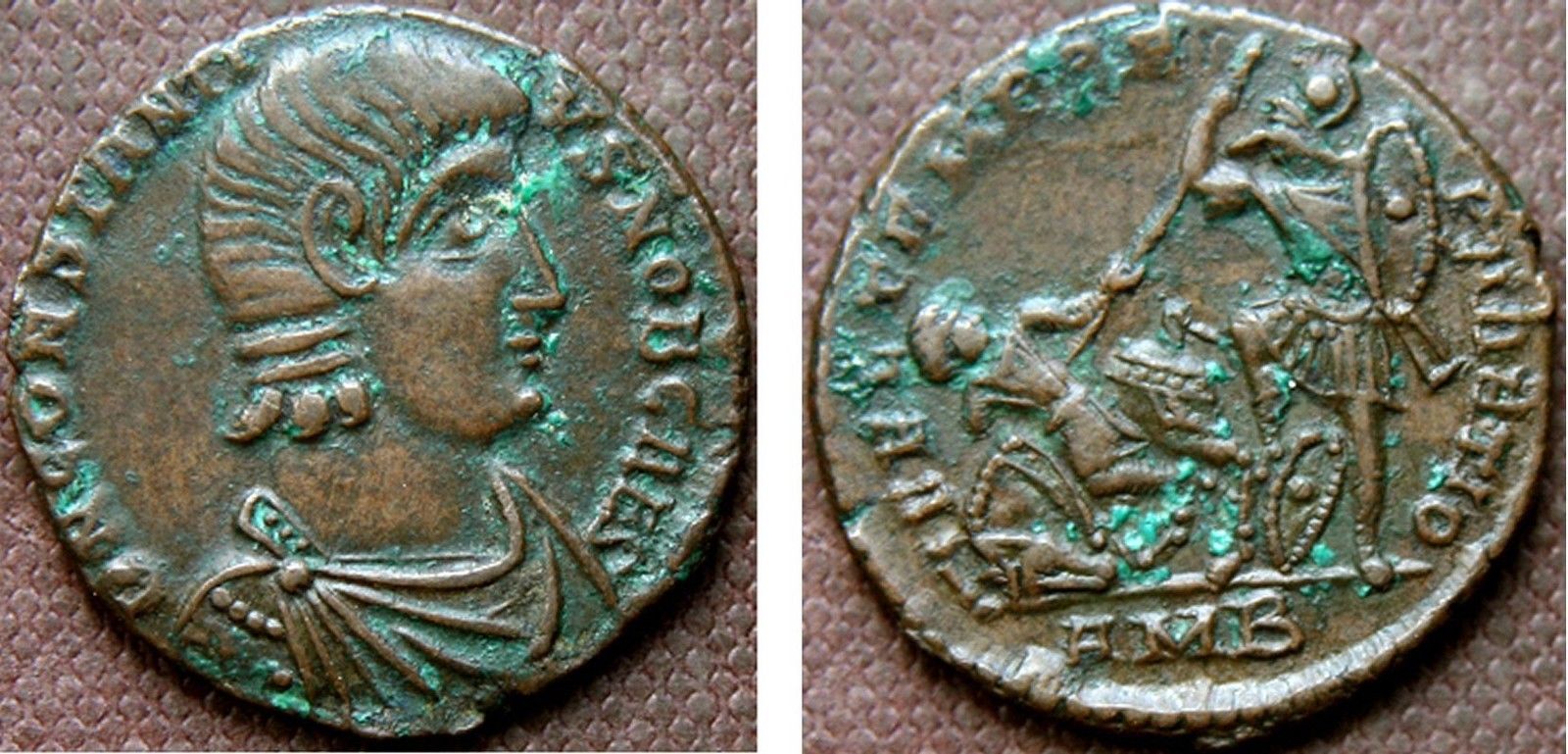 I have never heard of a Constans from Ambianum, as the mint was opened by Magnentius after Constans had been eliminated. There was however a brief issue for Constantius II and Gallus after the defeat of Magnentius and before the closing of the mint later on in 353.