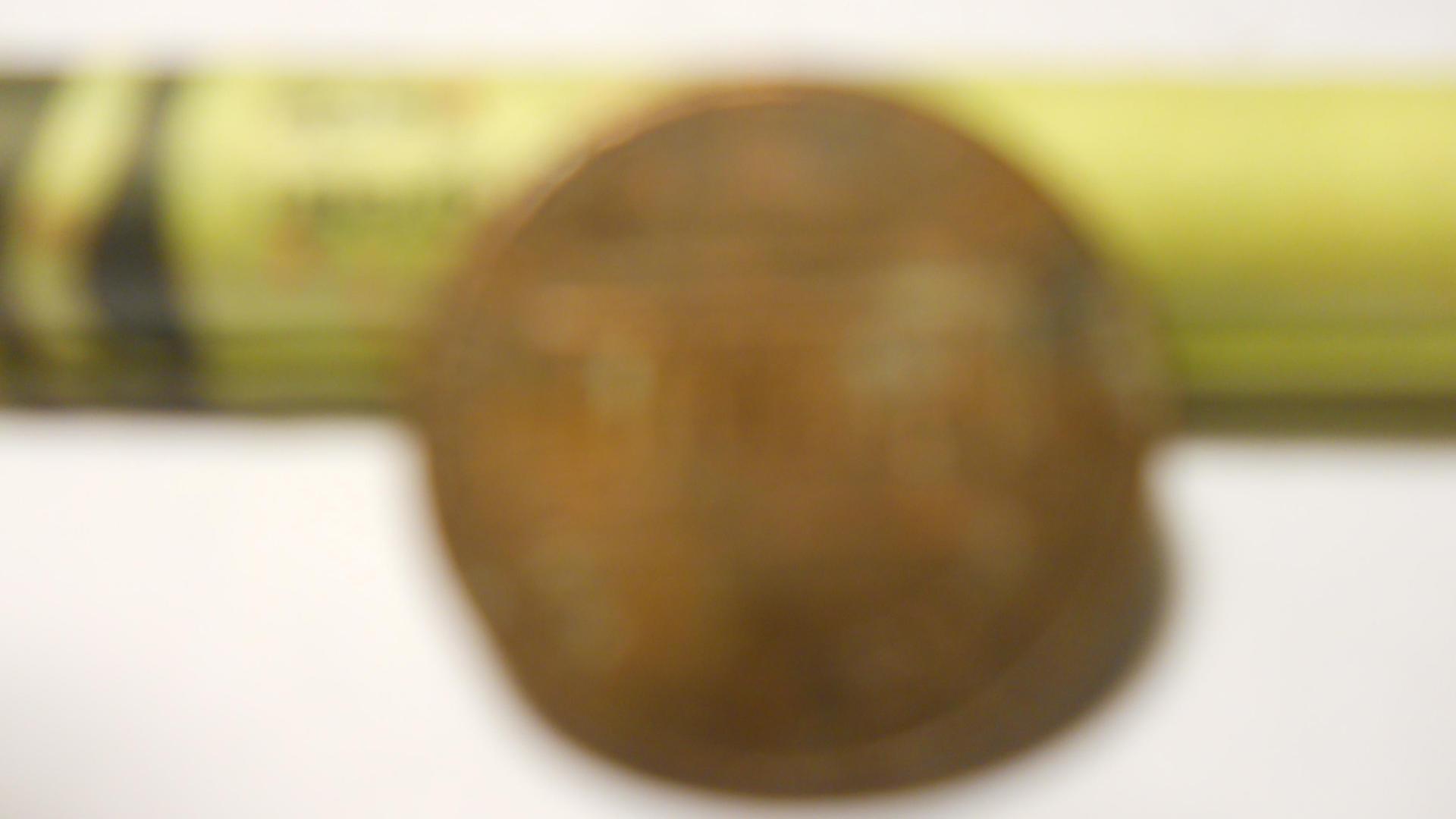 Just scratches, but look at that huge zit between the chin and date. You could pop it with a pin, then spend it, it's a bubble in the plating.