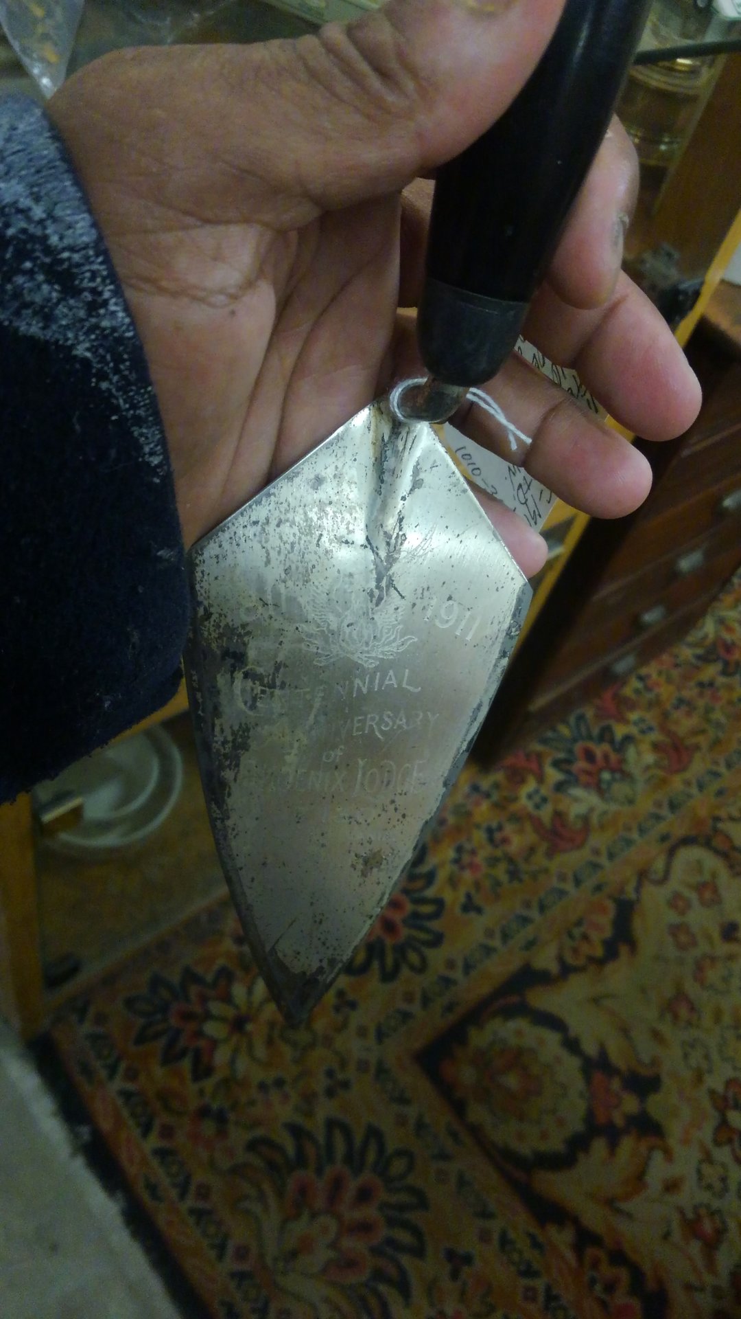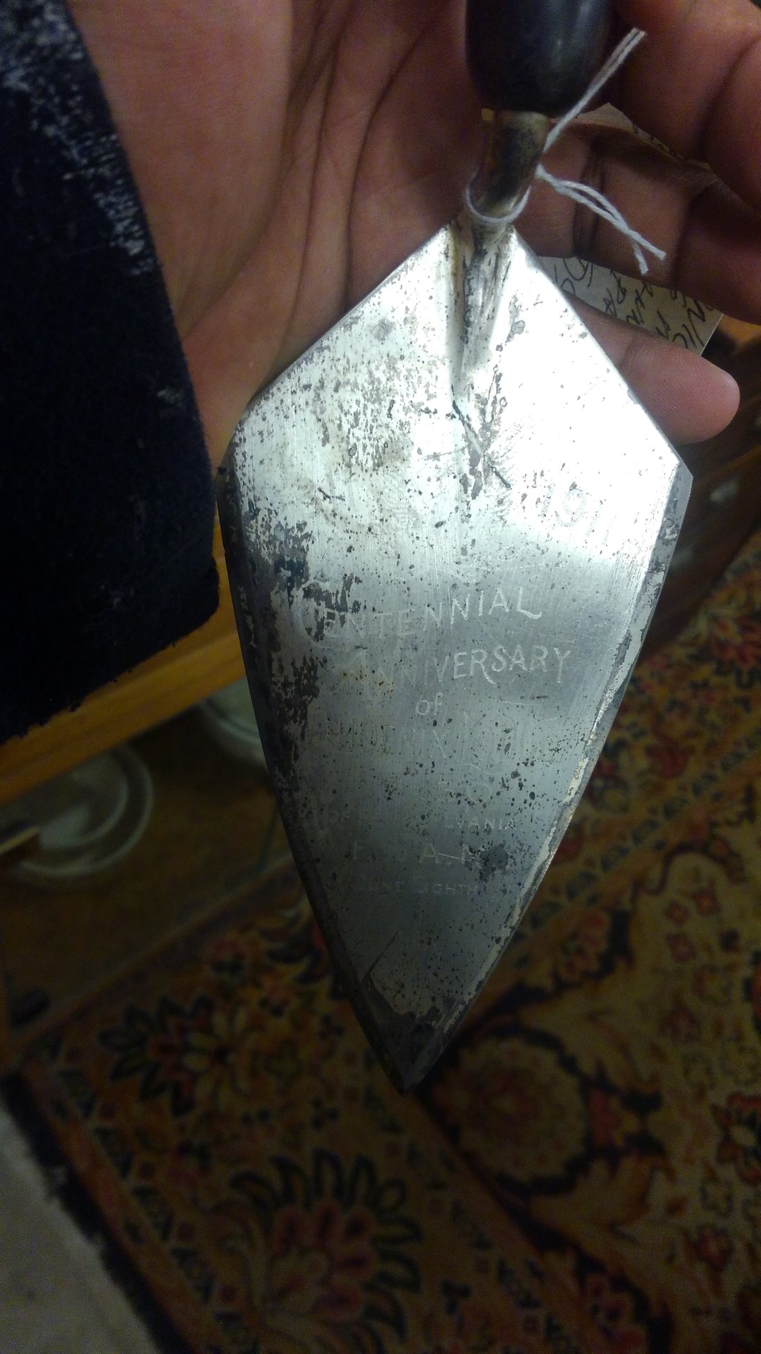 From what I see in your photos I think you will find that your Trowel is made of steel and only Silver Plated. What Lodge is it the Anniversary for.