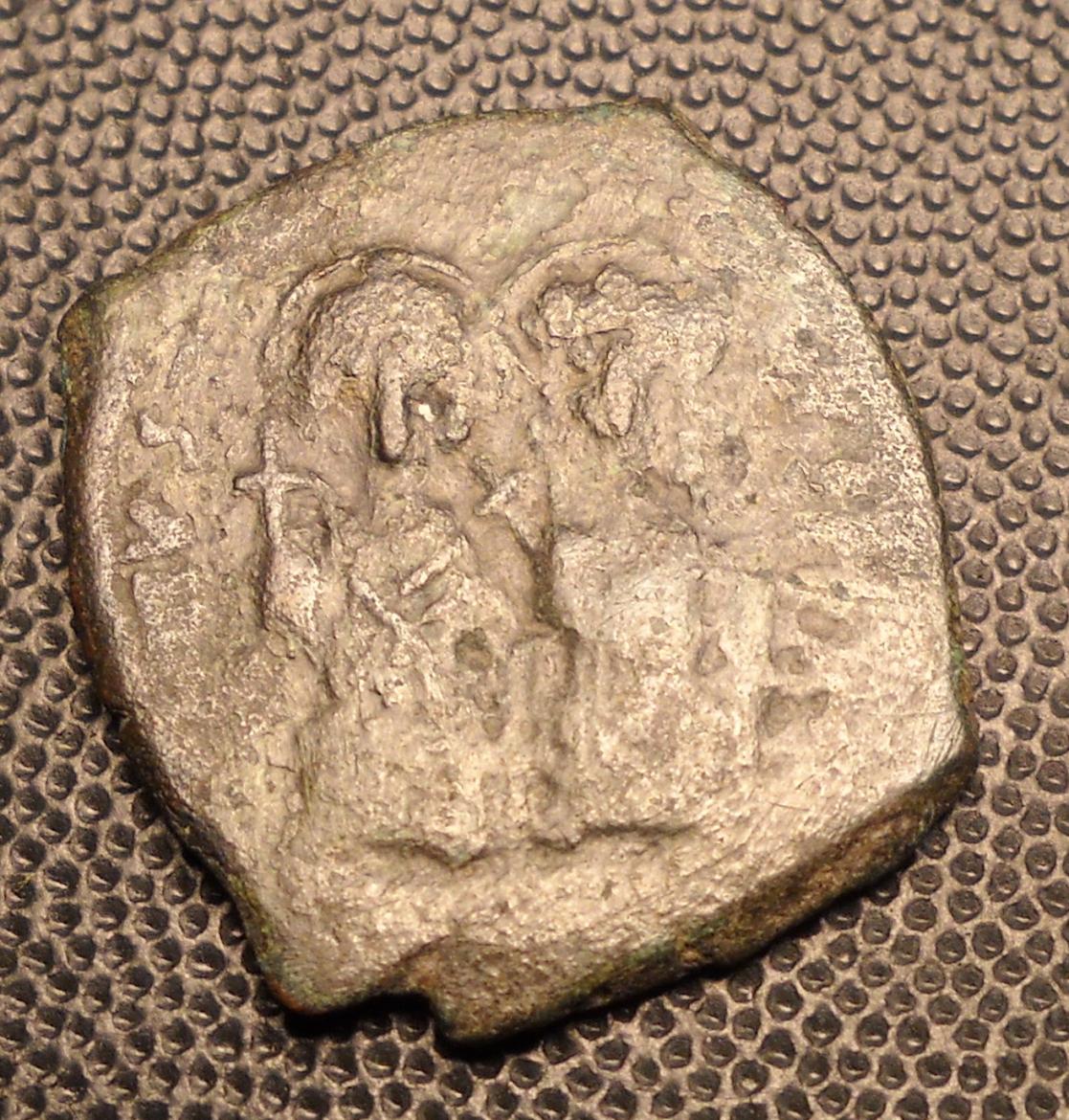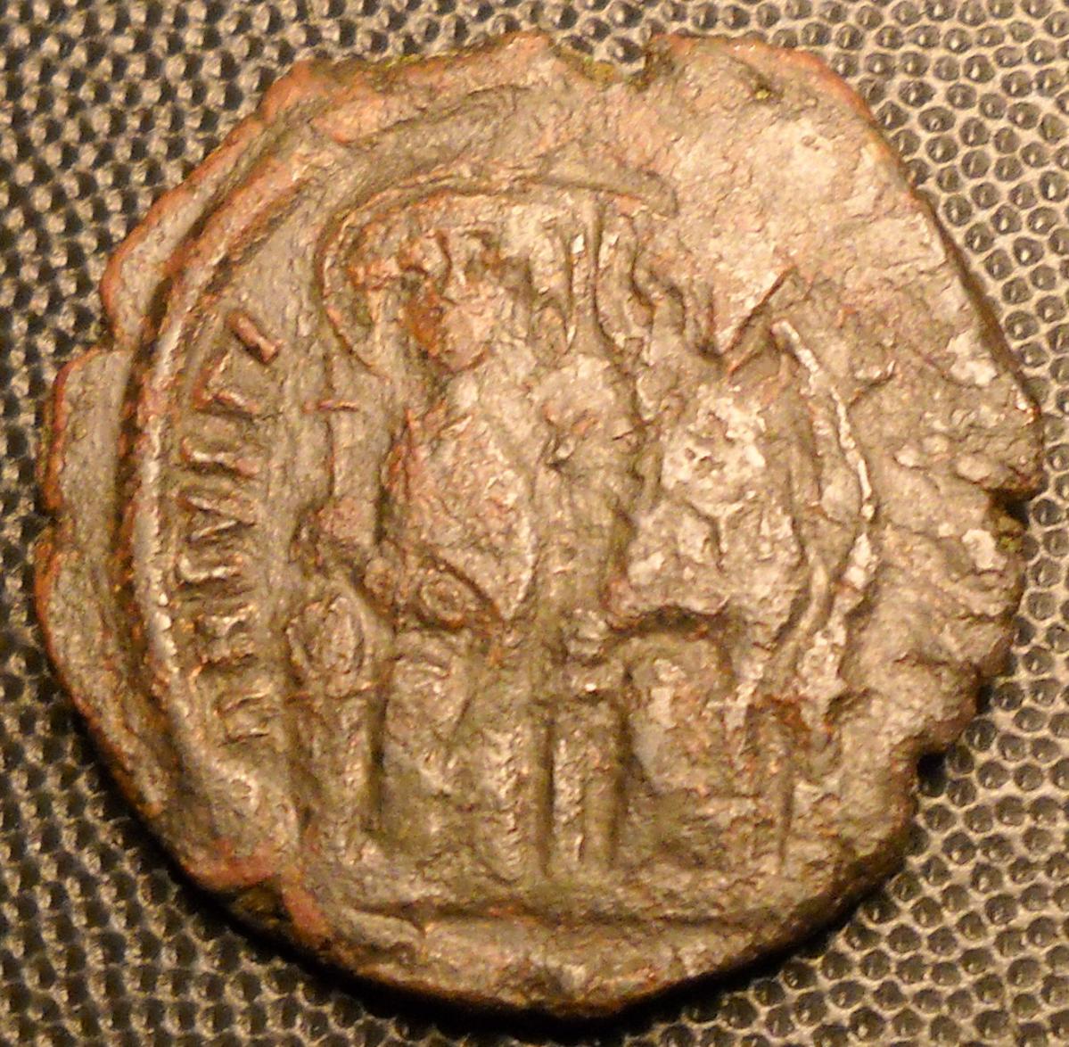 I need more coins with the chi rho on them so I picked this up for a good price. Justin II follis with chi-rho reverse 15gms 30mm JUSTIN II A.D. 565-578 Æ Half follis, Obverse brockage. 6.8gm, 26mm