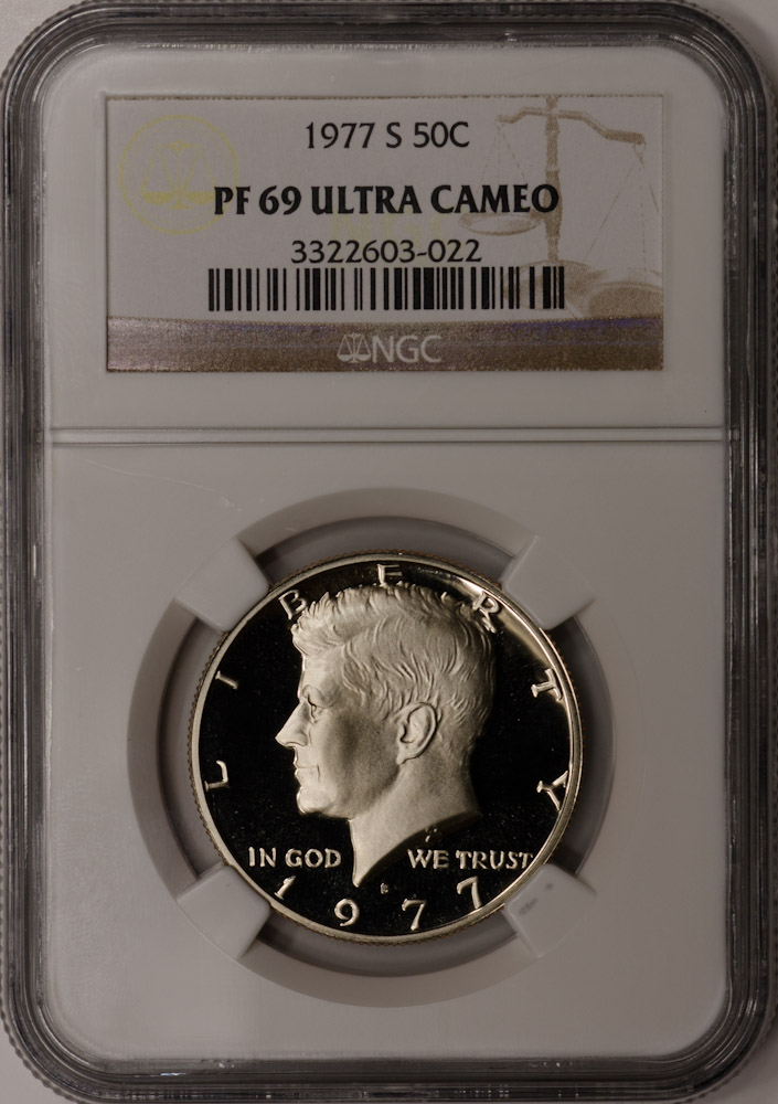 I dont think it's that bad! The reflection might distract a bit from the coin, but I just took about 70 picures of my slabbed Kennedy collection, and the plain vanilla pic of the dcam coins can get pretty tedious. The yellow beneath Kennedy's head makes for an interesting shot. Pic below is good for coin identification, insurance purposes, etc. But kinda boring, yeah?