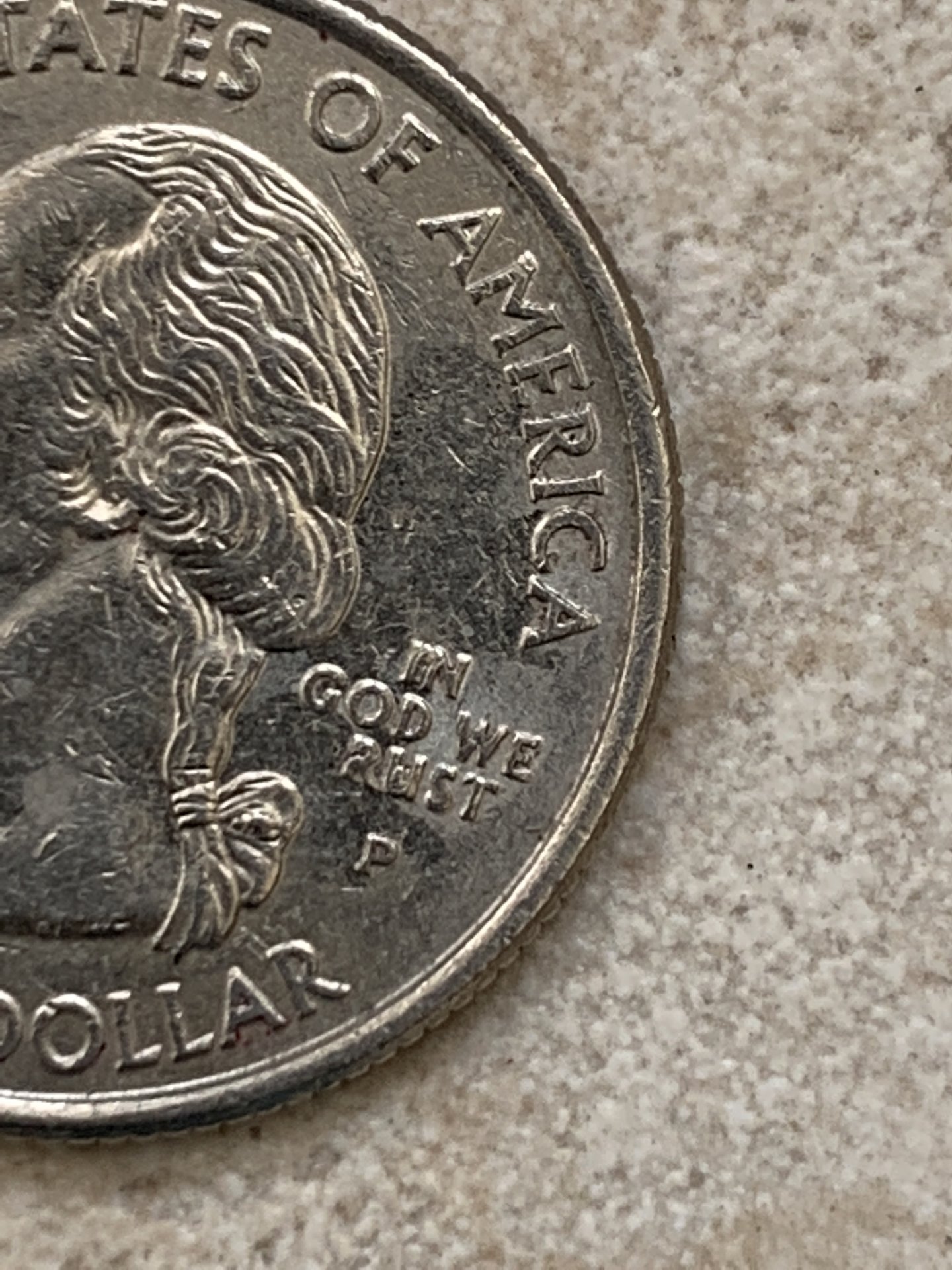 On this coin the tea in trust looks almost nonexistent. Also there is a covered area in the U of the word trust and I almost looks like it’s doubled. Does anyone see the same thing?
