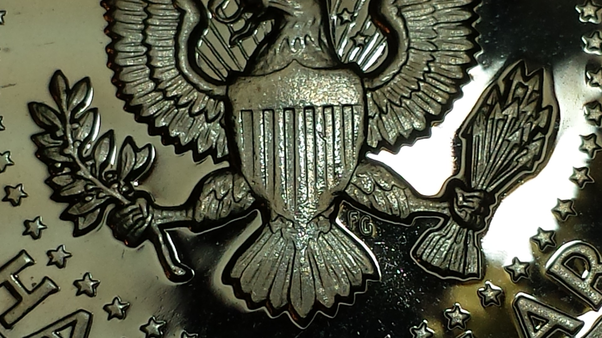I was looking closely at this Kennedy Accented Hair half dollar and it looked like it had scratches on the shield on the reverse, so I enlarged it through a camera and there appears to be a blob on one of the raised bars on the shield. Has anyone seen something like this. Is it a die crack/cud error? Is this typical of these 64 proofs? This entire coin seems to have some other roughness, although as a whole it is a very nice proof coin (when not observed in such detail).