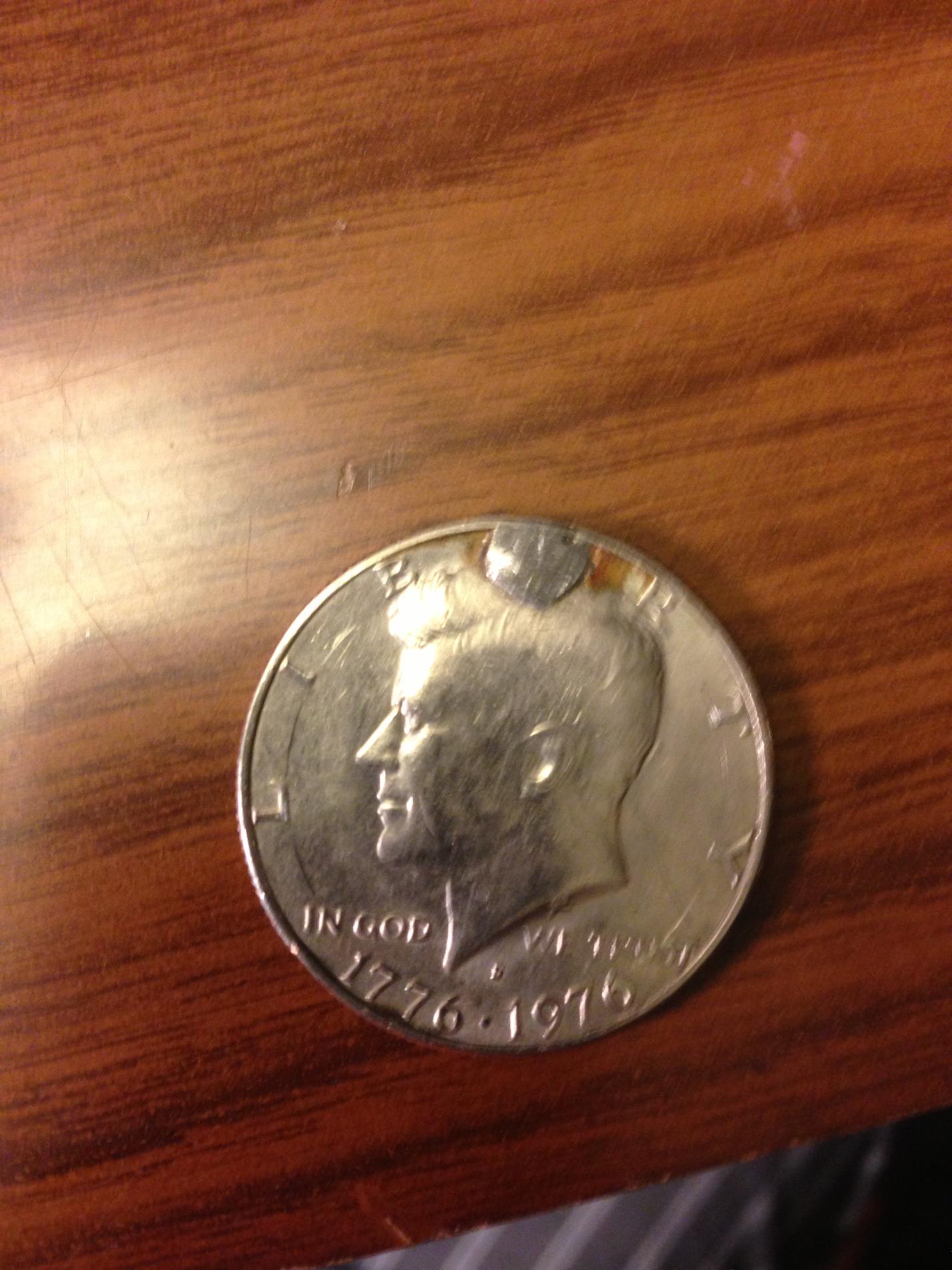 Looks like solder or something on the coin, perhaps covering a hole? Does the reverse look the same? If so I'd say someone made it into a necklace.