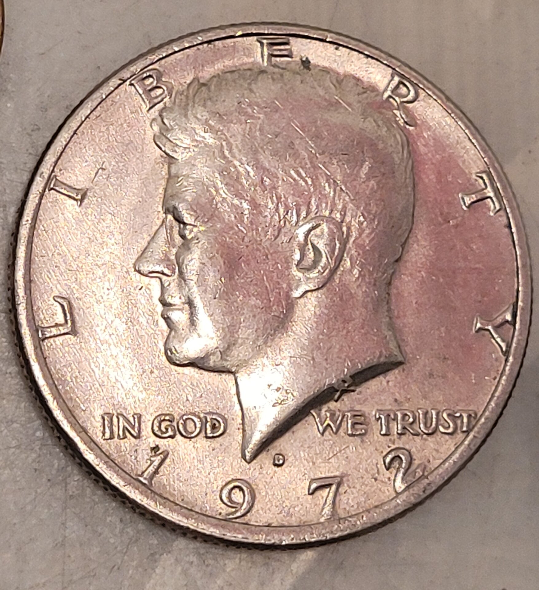 Was wondering why my 1972 D kennedy half dollars edge is different from the rest. One example shown. I can't find this possible error. Thanks in advance.