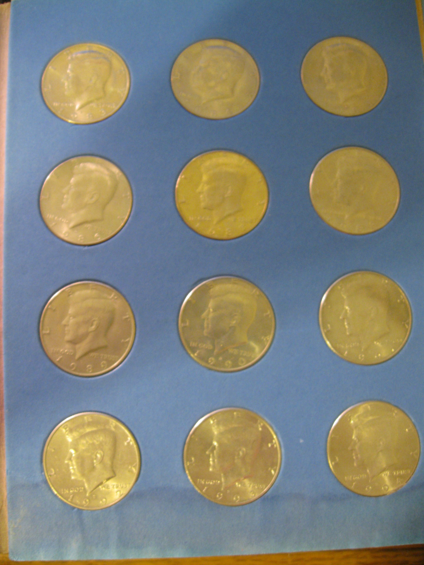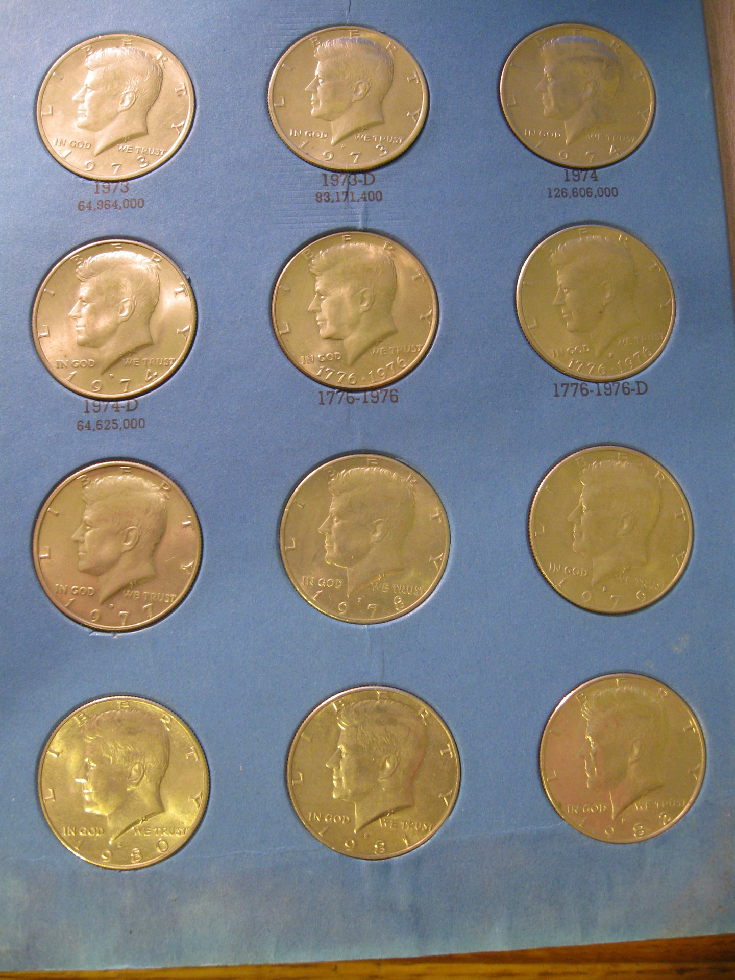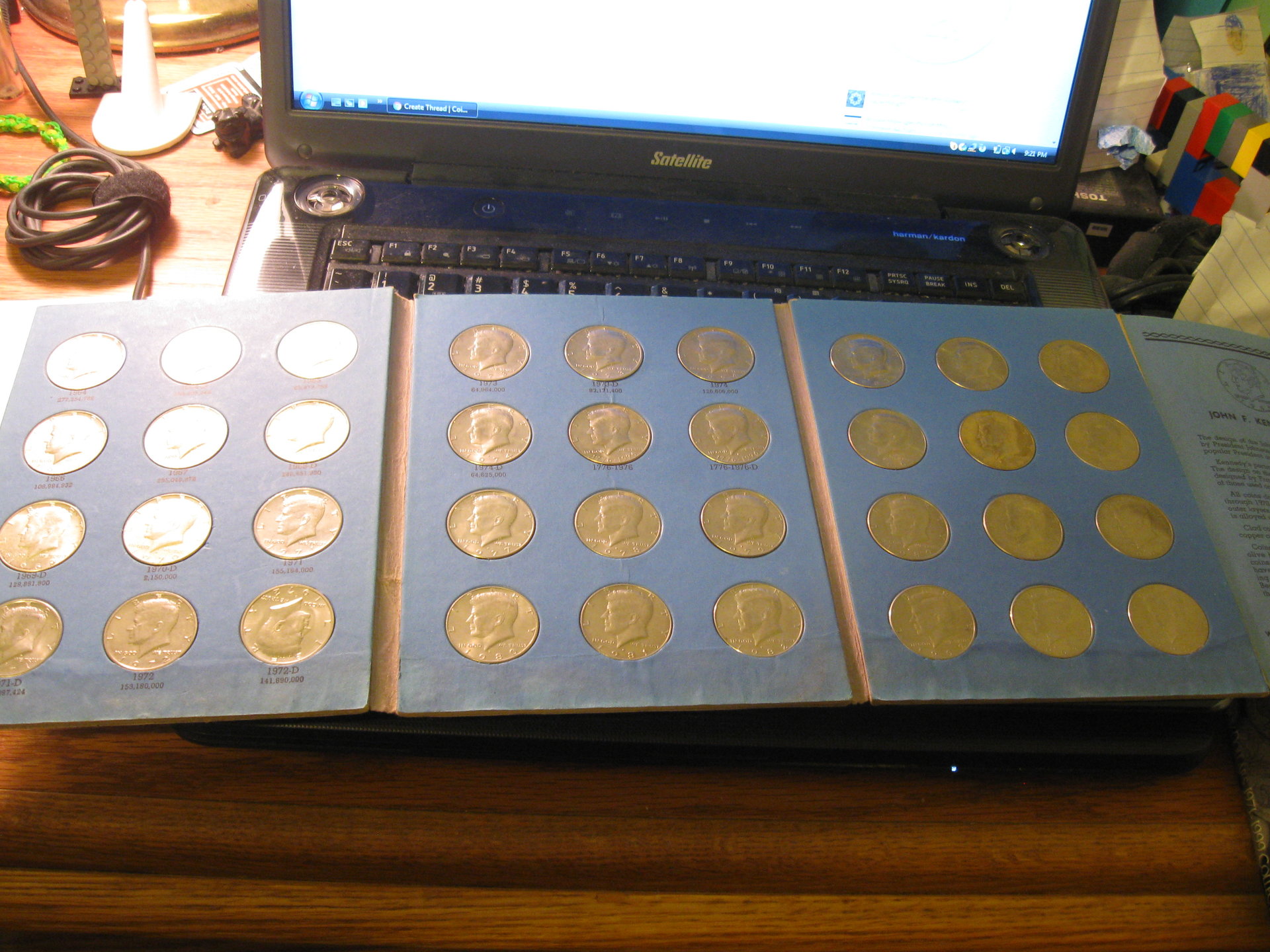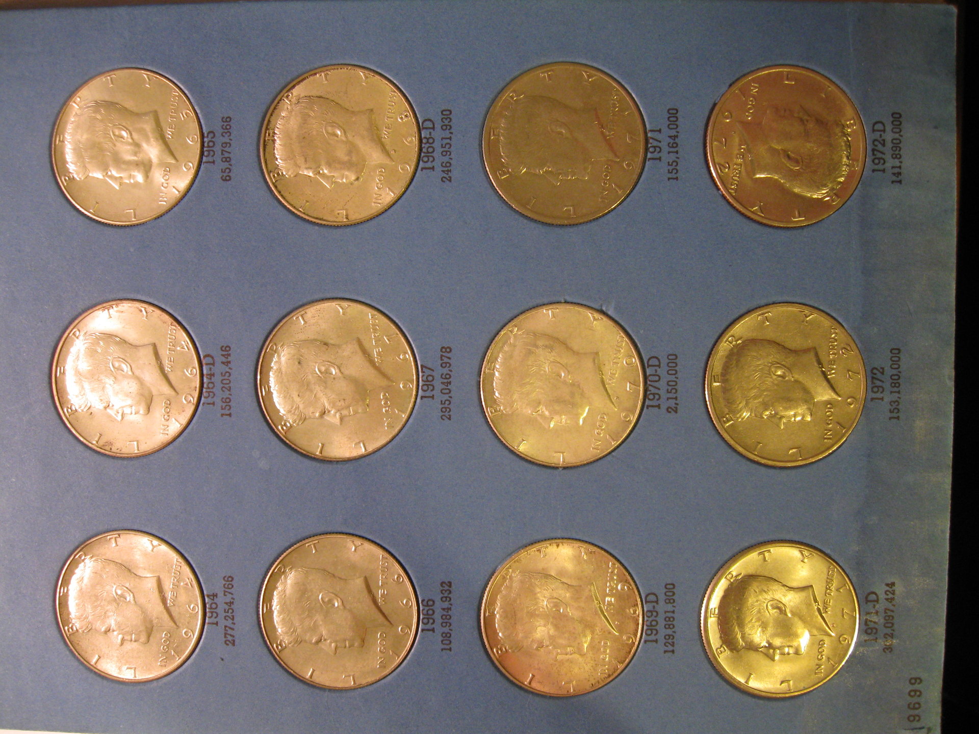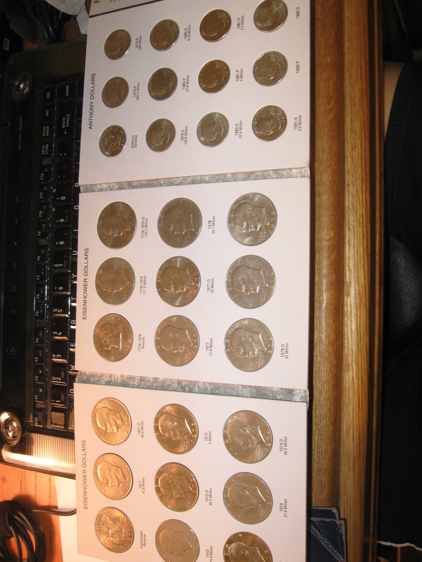 I have two coin books for sale. First one is Kennedy Halves. 1964 P & D plus all the 40%ers. Including the 1970-D. Figure $6.00 each for the 90% = $12.00 Figure $2.00 Each for the 40% = $10.00 Figure $10.00 for the 1970-D = $10.00 Figure Face for the rest = $14.00 Total for the coins $46.00 Plus $4.00 to ship which is below cost. The 40% besides the 70-d is below melt and the 90% is at 12x. I believe its fair. $50.00 Shipped Firm. Next is a book with 18 Ikes and 12 Susan B Anthony. Check the pictures out. No silver or proofs in this set, just year mintmarks listed in the pages. $50.00 Shipped Firm. If you buy them both i'll do them for $95.00. Message me and I'll give you my paypal address for payment. You can pay gift or merchandise. Either way is good I'll cover the fees. If I do not answer your email that means its sold. I'll try to check as often as possible to keep you updated. I'll try to mark sold as soon as it sells. Have sold here before and I am a top rated powerseller on ebay.