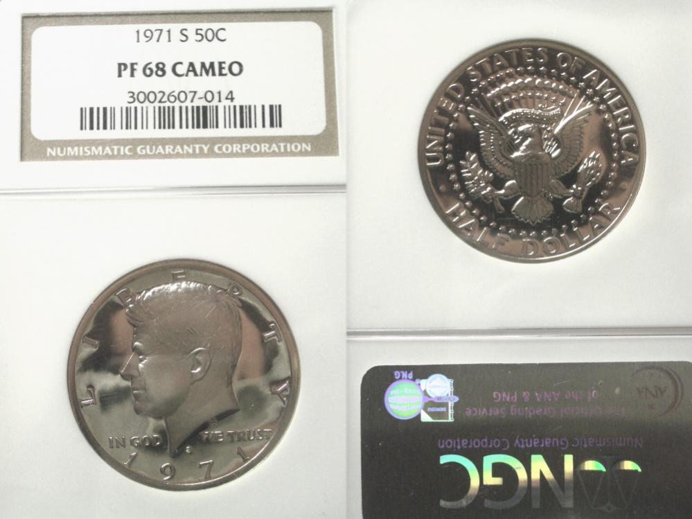 1st eBay not a good place to gather a value any coin. Kennedy are like Roosevelt Dimes silver Proof& Mint stage there 2 coins that over looked and under priced 90% of the time. Here what one good place to get values Kennedy's Silver & Clad. ***1971-S is a sleeper Kennedy Proof PR-67-69 DCAM can cost more than one thinks. 1946-1964-PDS Roosevelt Dime are also a sleeper to.Here where a fair market Value is found & is free to so everyone save the link as you ck out any other graded US coin for free.:kewl::foot-mouth:???? http://www.pcgs.com/PRICES/PriceGuideDetail.aspx?MS=1&PR=1&SP=1&c=125&title=Kennedy+Half+Dollar