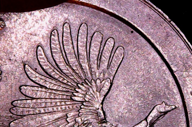 Yea.... This came thru my shop today,an older lady paid exact change and handed me this.....very cool coin overall. A very unique looking error on the reverse,along with 3-4 rly big die chips on the toe,wing,and on the back leg. Doubling shows on the Obverse in Liberty pretty strong,also some doubling effects in the facial profile around the ear and top of the head.