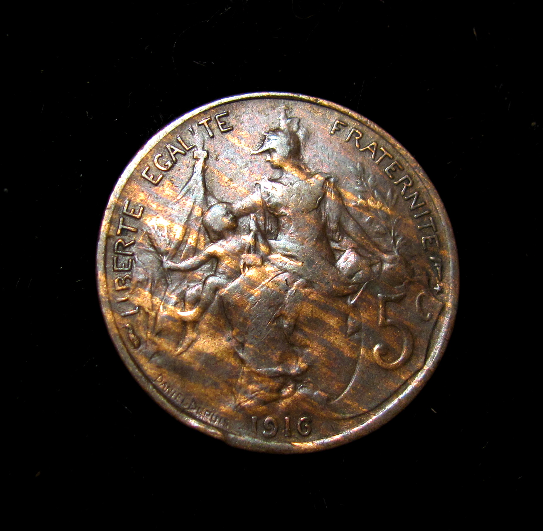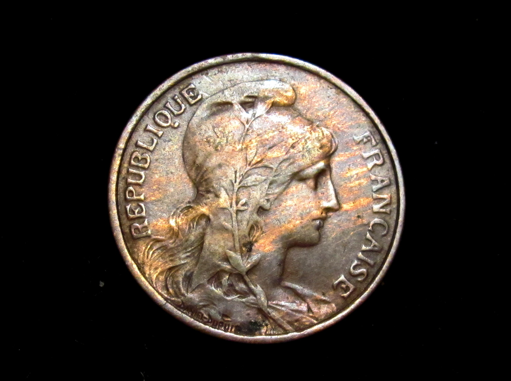 Probably my favorite lady on coins or in art for that matter. Bur what is her history, her origin? "The profile of the Marianne appears on the official seal of the country, is engraved on coins, and drawn on stamps and banknotes. The symbol’s roots can be traced back to 1792, when a popular song in the south of France used "Marianne" as a metaphor for the French Republic. The Marianne rose in status during France’s Second Empire under Napoleon III, and gradually evolved into an official symbol of France under the Third Republic (1870-1940). In 1999, a law was passed in France requiring that a new government logo, which incorporates the Marianne, be stamped on every official document produced by the French authorities. The Marianne serves to both unify government public relations and present a modern image of the state." Here's a coin I rediscovered that I had put aside to image because of the toning. If you wish, please share your favorite Marianne.