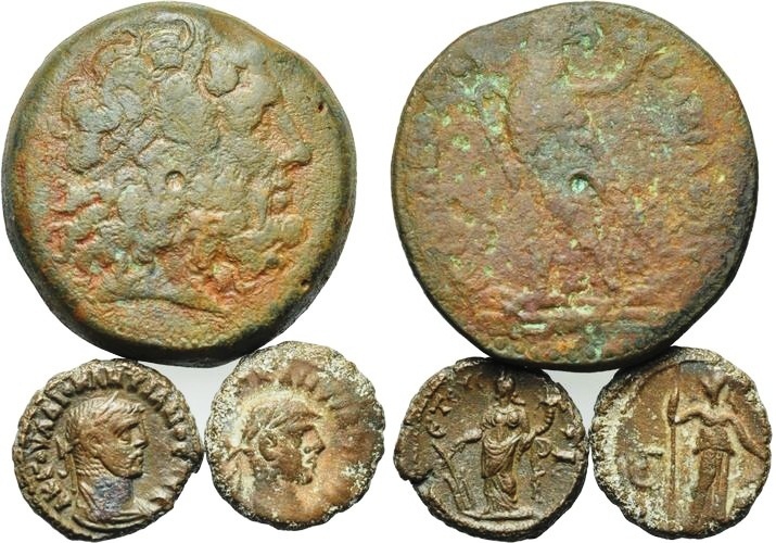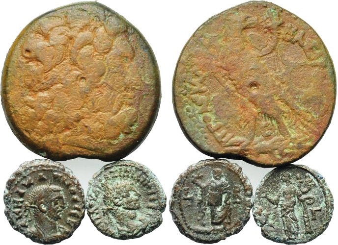 Got a few large Ptolemy bronzes: 46 grams 37mm, around 210BC 31 grams 34mm, around 210BC 47 grams 37mm, around 210BC Not in great shape and currently soaking (with a couple more not quite as big) but its 67 grams and 40mm