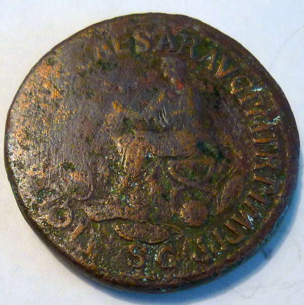 I think this is my largest coin. Nero Claudius Drusus AE Sestertius RIC 109, struck at Rome 41/42 AD OBV: NERO CLAVDIUS DRUSUS GERMANICUS IMP, bare head left REV: TI CLAUDIUS CAESAR AUG P M TR P IMP P P S-C, Claudius seated left on curule chair amidst arms 28.6g, 35mm