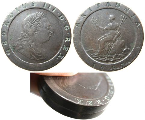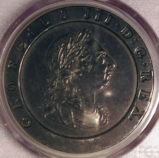 Here is the classic 1797 Great Britain 2D. It was purchased from Allen Berman at a Connecticut coin show called "Coinfest" I've got a big piece of copper from Russia to share but no photo to be found tonight.