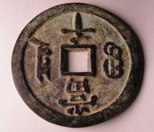 Last night at our coin club meeting, made a pot of chili, for our members. i picked up 5 coins, i seen these cash coins posted, i really don't want to start collecting them, but i wanted to get some just to say i have one or two.. Then some one had a very large cash coin, that's what i wanted and last night was able to get two. I really don't know anything about these, no info on these either, not sure they are real.. 1st coin.. Chinese 1000 Cash coin.. 58mm x 49.59g.. 2nd. coin. Chinese 1000 Cash coin. 70mm x over 50g. that's as high as my scale go's.. I'm not going to show the Rev. because it show 4 different folks getting happy.. I don't want to get the boot , like Steve and his goat guy...