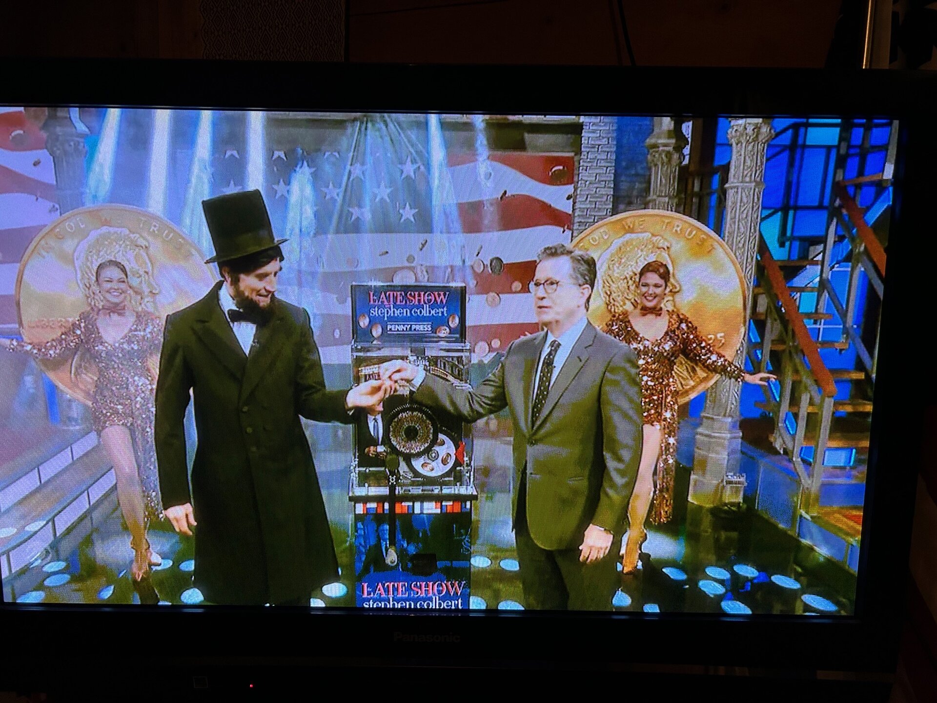 Stephen Colbert had a segment on the demise of the penny and elongated cents tonight, culminating in the dramatic reveal of a custom Late Show penny press made by The Penny Press Machine Company in Little Canada, MN. (https://www.tppmc.com/home) It makes 4 options, including one of a penny pressed into a penny. He said it will be in the lobby at the theater for anyone to make them, until his show ends in May. I thought @lordmarcovan would get a kick out of this. Perhaps their YouTube channel will post a video of it at some point; I couldn't find it yet tonight.
