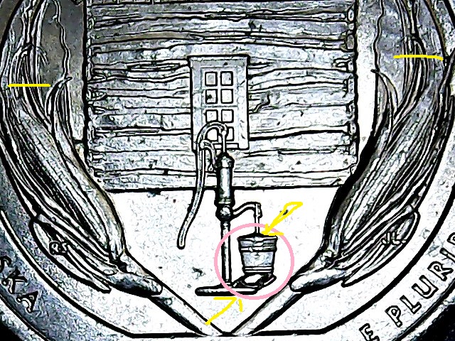 This is a 2015 P Homestead circulated commonly known as a leaky bucket this one has two extras one is a piece of metal hanging off the leak the second one is a small chip at the top of the bucket and we have to add the two small chips in the corn stocks enjoy the photos