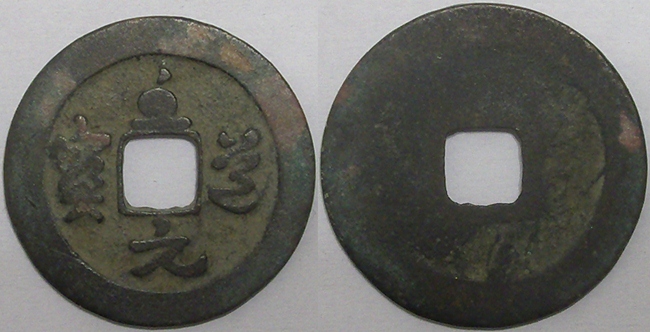recently, i purchased a copy of "cast chinese coins" by david hartill (ct member). awesome book! i was looking up some of my coins in the book, and noticed some notes by david that said the legend on coins produced under the reign of tai zong (976-997 a.d.) were written by the emperor HIMSELF!! wow!! his own actual handwriting on his coins... here's a coin from his reign...