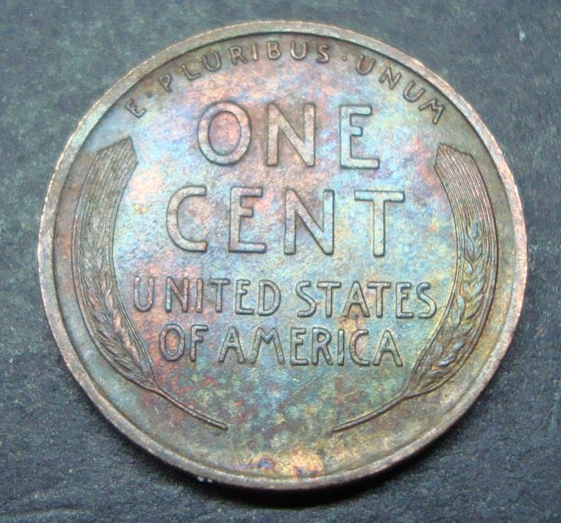 Based on the last set of photos I'm voting 95% against it being a proof. The I couldn't identify any of the 1909 VDB proof obverse diagnostics in the photos. However, those are tough to see in photos unless you have the lighting just right, so that isn't the main reason for my vote against it being a proof. More telling is that the photos do not show any indication of the crescent shaped die chip that is found to the right of UNUM on the reverse. The photos are clear enough to where some indication of that die chip should be evident if the coin is a genuine 1909 VDB proof. Unfortunately, I see no such die chip where one should be. WingedLiberty, while it's true that matte proofs are often found with wild color because of the sulfur-rich tissue paper the Mint issued proofs in during that era, there are many business strike coins that have plenty of colors. I have owned many many 1909 VDB business strike coins with very colorful toning, even some similar to Collector's coin. Remember, the a business strike coin and a proof coin both have the same composition. So if you put a nice red proof in a sulfur-rich tissue paper it'll tone up.... but so will a nice red business strike that has been placed in a cardboard album that has sulfur and other chemicals in the cardboard.