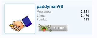 Paddyman98 said: I don't know how to do the percentage.. can someone help me figure it out? I can help you with that...when you divide the # of likes by the # of your posts, you get the percentage. Yours comes out to: 6% errr, I mean minus 6%