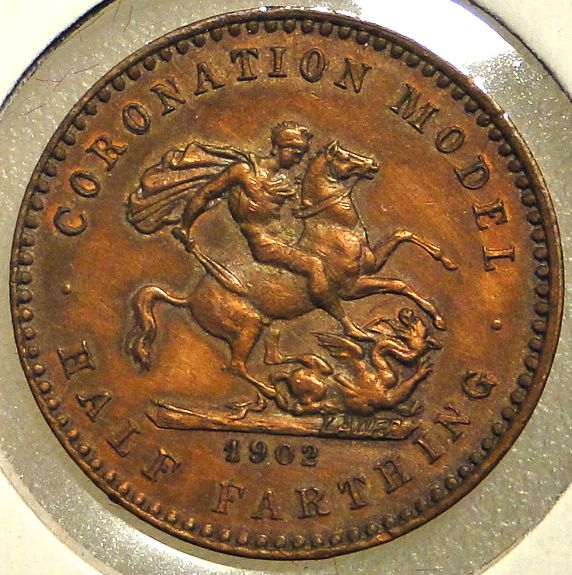 So this isn't a gold sovereign, but it is apparently modeled after one. It appears to be a Half Farthing marked "Coronation Model". I didn't see it listed in my Krause Publication, and it has been a while since I looked it up online, but apparently, it is some sort of commemorative or maybe a hard times token or other sort of aftermarket maker. There are several variations known, but I just picked this piece up because I just love copper and it had an interesting die crack along the portraits head and I also thought it's small size made it interesting as well. That's all I know about it. I just put it on this thread hoping somebody else would like to see it. Matt