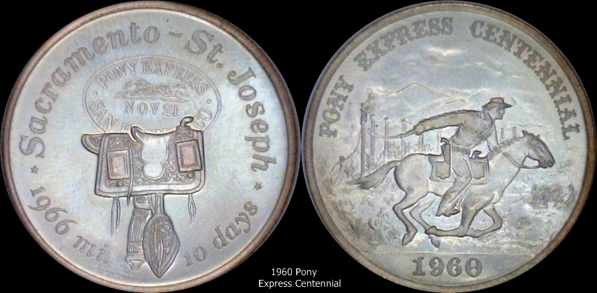 @Paddy54 , Just in case you didn't know, that medal there is a Heraldic Art Medal (also called So-Called Half Dollars). It is one of the 60 issued (3 per year) from 1959 through 1978. The Pony Express medal is #4 of the series. Below is my example of the type! It's a great design executed flawlessly (as are really all of the medals of the series).
