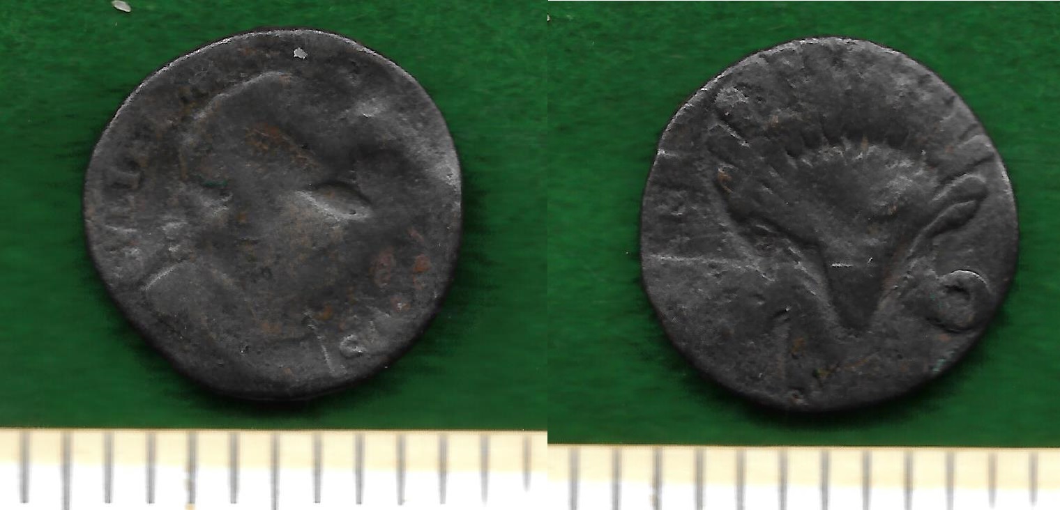 ... and this also picked up today for you counter-stamped fans. The base coin is a William III farthing from between 1695 and 1701. What the figure on the back is supposed to be I do not know - it might be a peacock's fan or an ornamental axe head - any ideas?