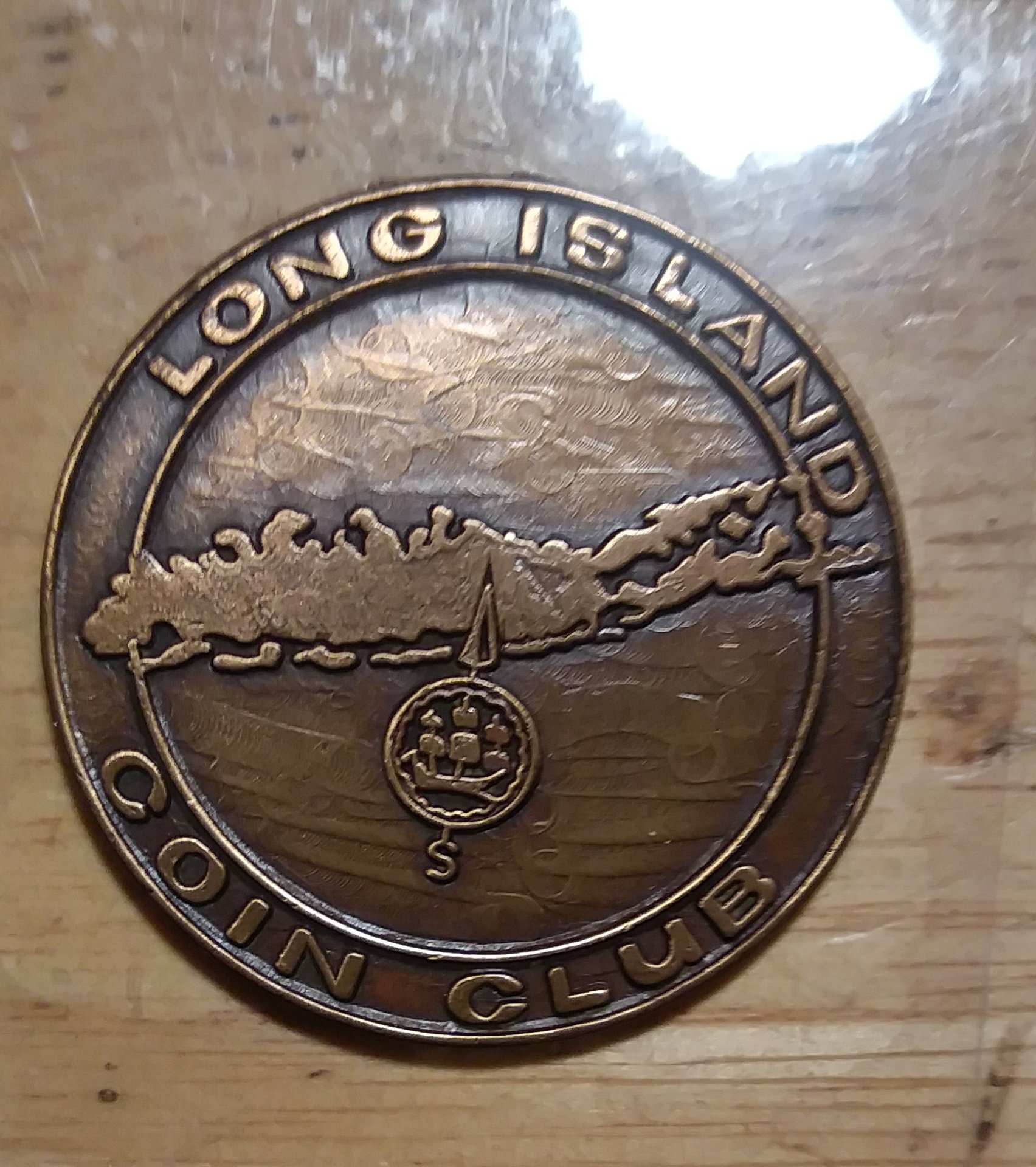 Long Island Coin Club 20th Anniversary, antiqued bronze, M/A, 13.2 grams, 32mm. Notice the hairlines on the reverse? The lines don't go over the tops of the letters or digits and they go right to the edges of the letters and digits. And the blackening has not been disturbed. These things are not possible had someone scrubbed the reverse of this medal. And why would they scrub the reverse and not the obverse? I believe they polished the planchets. And the reverse did not have enough design to pull the hairlines out. The hairlines are hideous looking. But I bet there is funny story here somewhere of someone or someones palming their foreheads when they realized polishing the planchets was probably a bad idea. Does anyone else have this medal and is the reverse hairlined?