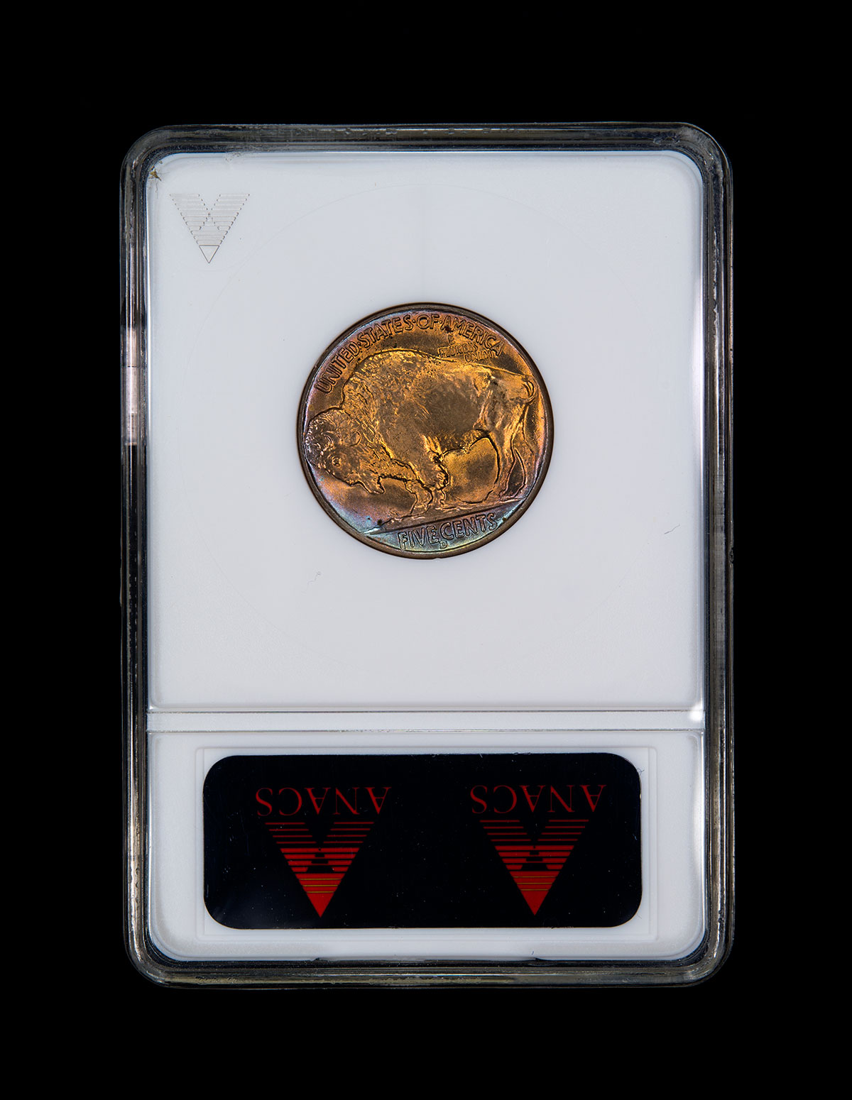 I love it too. I think it was held to a 65 because of the dark spots on it. Thankfully they don’t look like carbon spots rather just gunk. I wonder if it were to be conserved, if those spots would reveal bright white or possibly the same color underneath. The only way to find out would be to crack it. I have a hard time doing that to older holders. So it just might stay the way it is. I can’t believe how deep and rich the gold is. The blues and lavenders really pop against it.