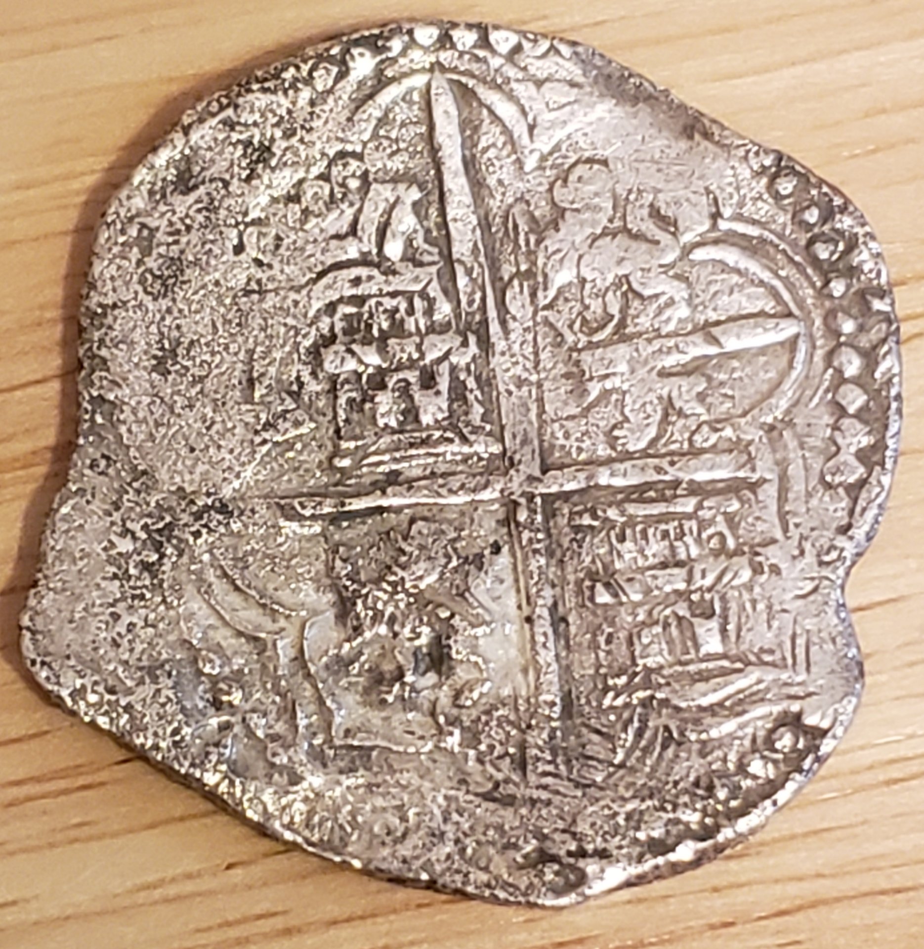 It's a wonderful specimen from an historic wreak. I have another made into a necklace for my wife an even rarer 2 reale.