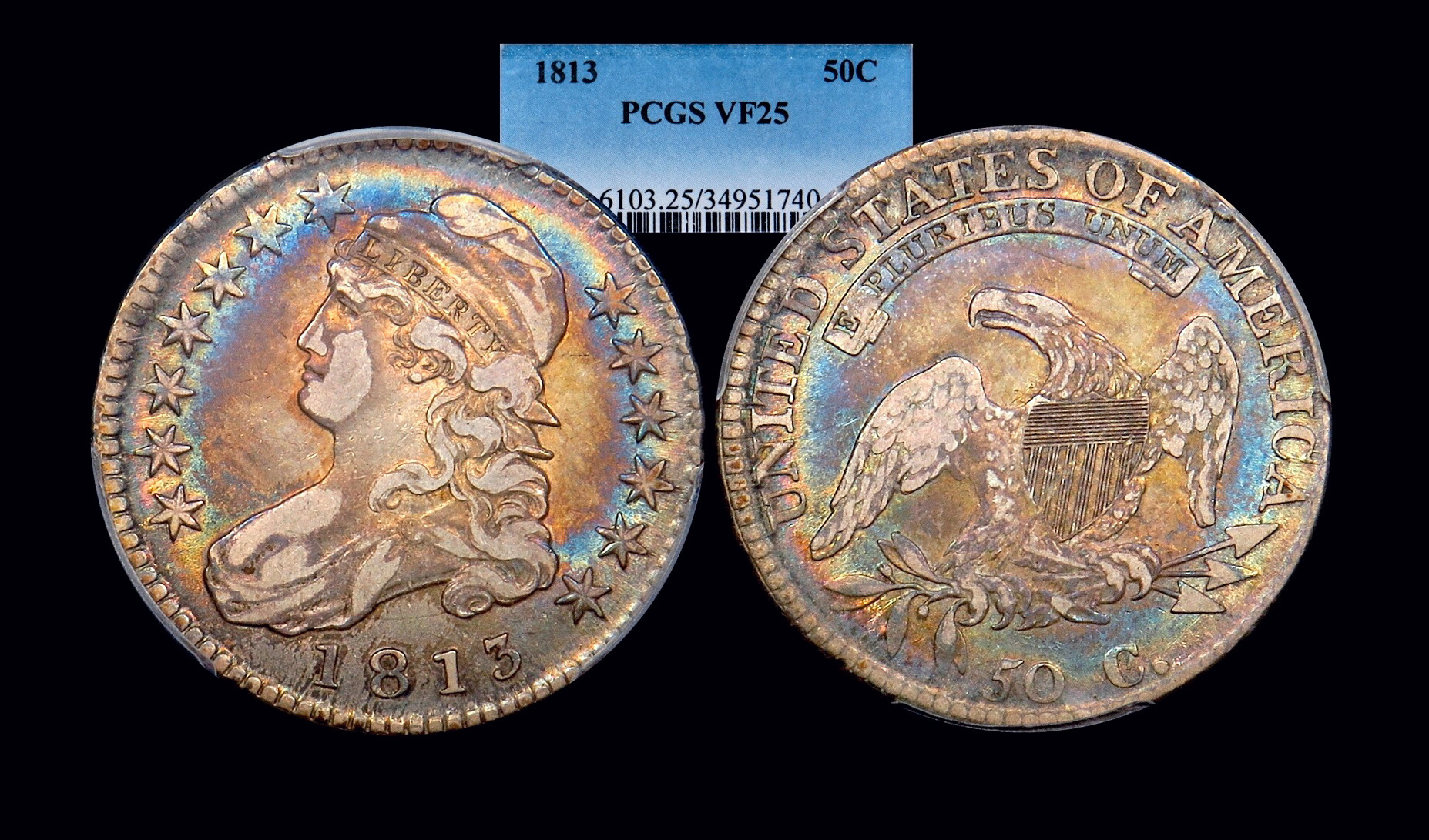 The 10 (through the date) and 26 (at the bust tip) have nice die crack to use for attribution. I know most will look at the toning, but I'm an attribution guy.