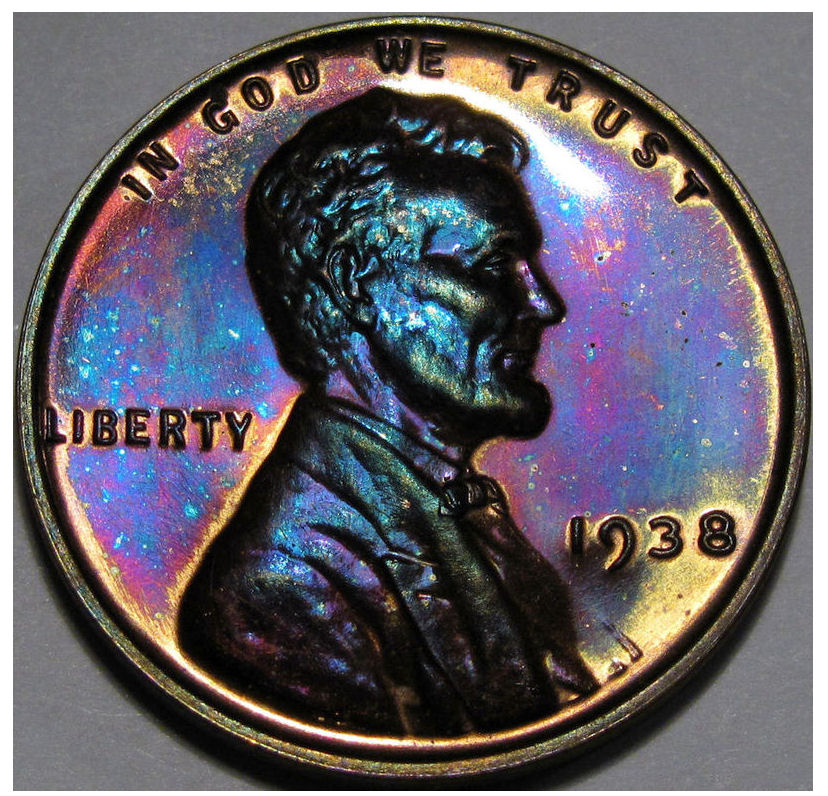 Another raw Proof Lincoln I found and bought on Wednesday. I'll be sending this into PCGS for grading and photos next week. This was the sellers blurb: "This 1938 Proof Lincoln Cent is estimated to grade PR65+RB. This is a simply amazing coin with tons of eye appeal. It is an original and naturally toned coin with incredibly nice toning. Both the obverse and reverse show stunning sky blue and rose tones. This coin has not been cleaned or messed with, it is not hairlined. The surfaces are very nice with no marks or hits and no discolored areas. There are only a couple very minute toning specks keeping this coin from an even higher grade. The coin is super flashy and fully mirrored. Just an awesome example of this early Proof Lincoln Cent. I thought it was also a very interesting coin in that it looks as if the dies were over polished or something ... the front of Lincoln's coat is missing, note right below the 19 of the date. I guess we could call this the missing coat variety! Truly an amazing coin in every way!"