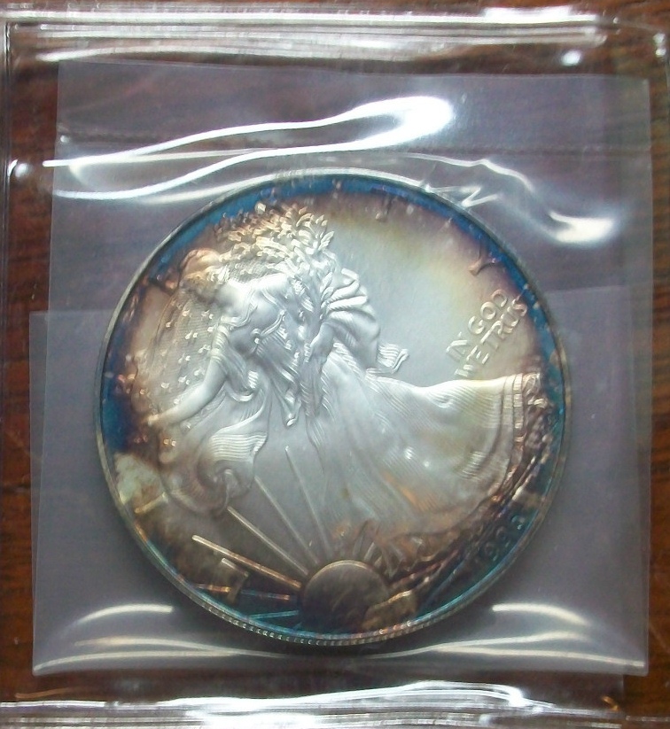 I can't properly image this coin, especially through the slab, but the reverse is a symphony of deep copper, gold, and orange... And the obverse has bands of pink and green all around the edges... I think this coin has had enough toning for a lifetime, so it's staying in the slab.
