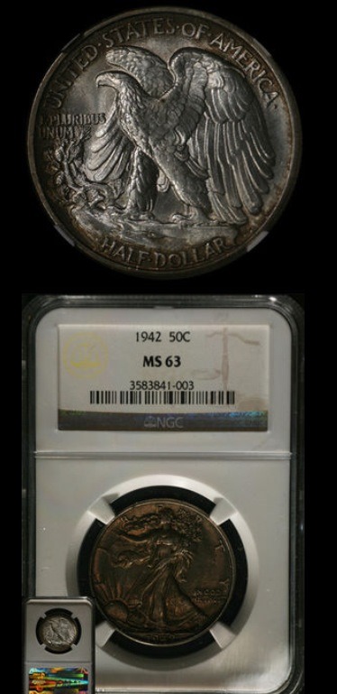 'Nother new Walker. This one ought to be interesting in hand also. I'm not big on dark toning, usually it's splotchy and crusty looking. This one looks fully colored and a nice deep even color. Paid right a book value for it, so the toning is just an added bonus. Not the best picture, ill get a better one when she's in hand.