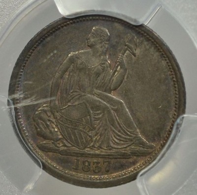 My most recent acquisition an 1837 No Stars dime PCGS AU-53. Only one more to to get, an example from the period 1860-72, and my type set of Liberty Seated dimes will be complete.