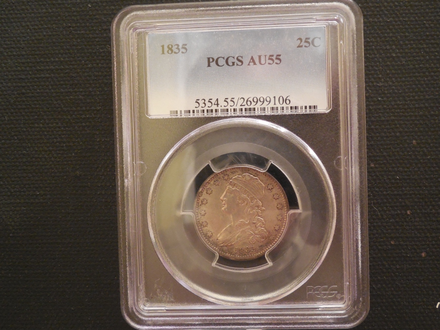 I don't normally like darkly toned silver coins but I couldn't resist this one. I spent some time examining it and the line across Liberty's face is a die crack that goes from 10 to 3. Because it was so dark, I think it was underpriced and not looked at too closely by others. The fields are so clean and the coin has clearly not been messed with for at least a century. I'd appreciate any thoughts on grade/value since these are not my specialty. Thanks