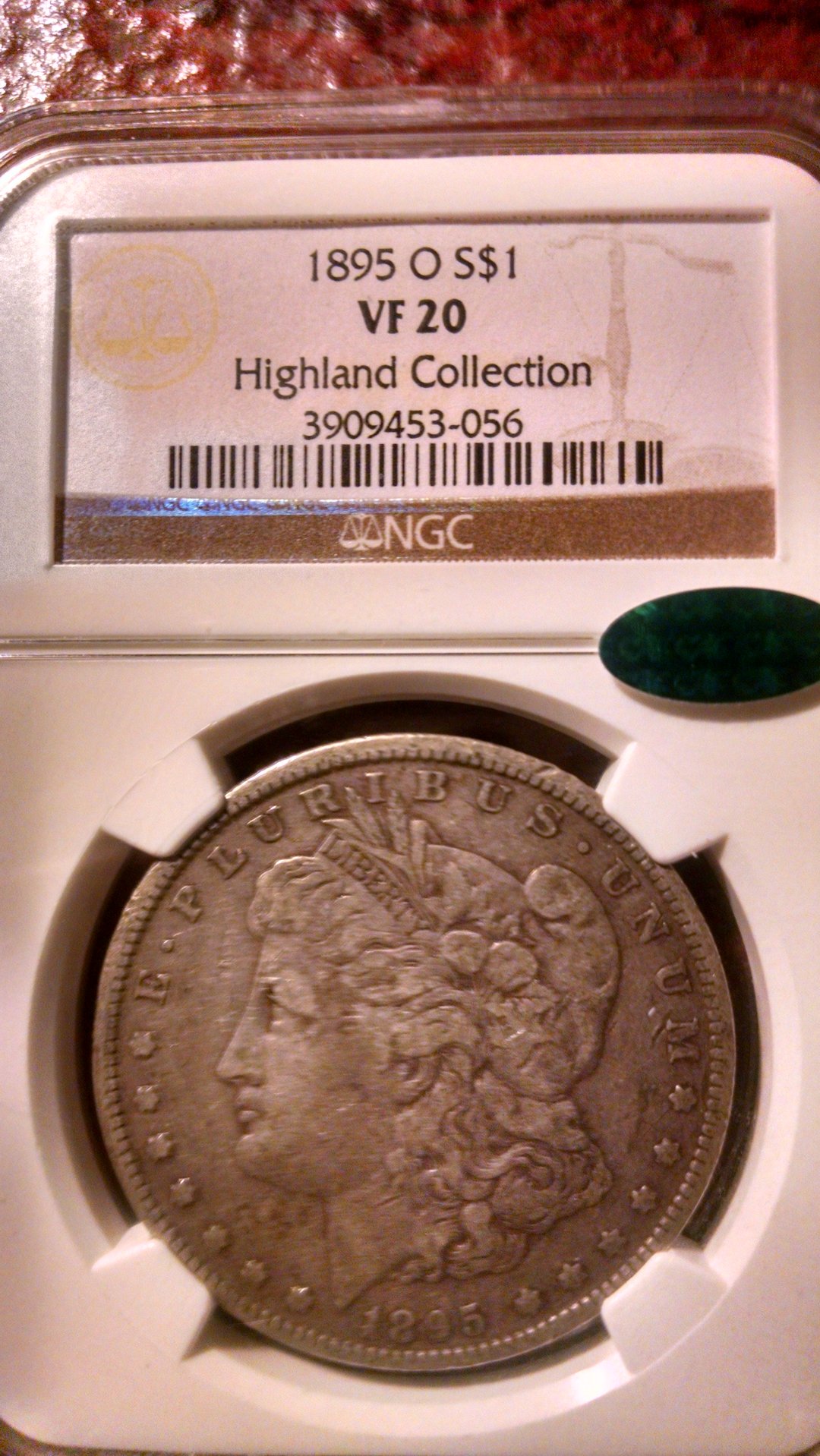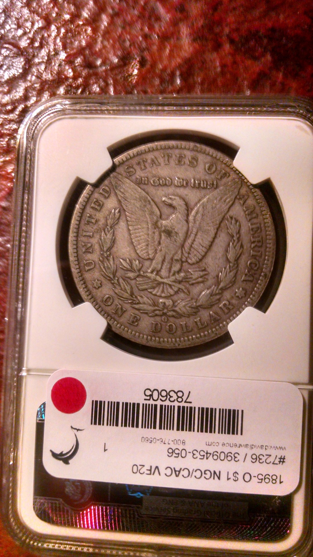 For a long time, I blew off having the 1895 Morgan. MS was in someone else's price range and I really didn't want to fork over for an AU. Below that I couldn't find anything that appealed. I guess patience is virtue. Here you go: My 1895-O Morgan, and it didn't break the budget!