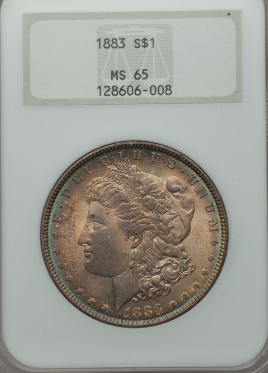 Here's another. Photos are from Legend~Morphy. Not quite as good as the Heritage photos. The toning on this is nice, but not as nice as the '78 8TF, although, this one has 2 sided toning. The indigo/blue on the rims is not quite as prominent on this coin either. The white balance on this scan/photo is a little off.