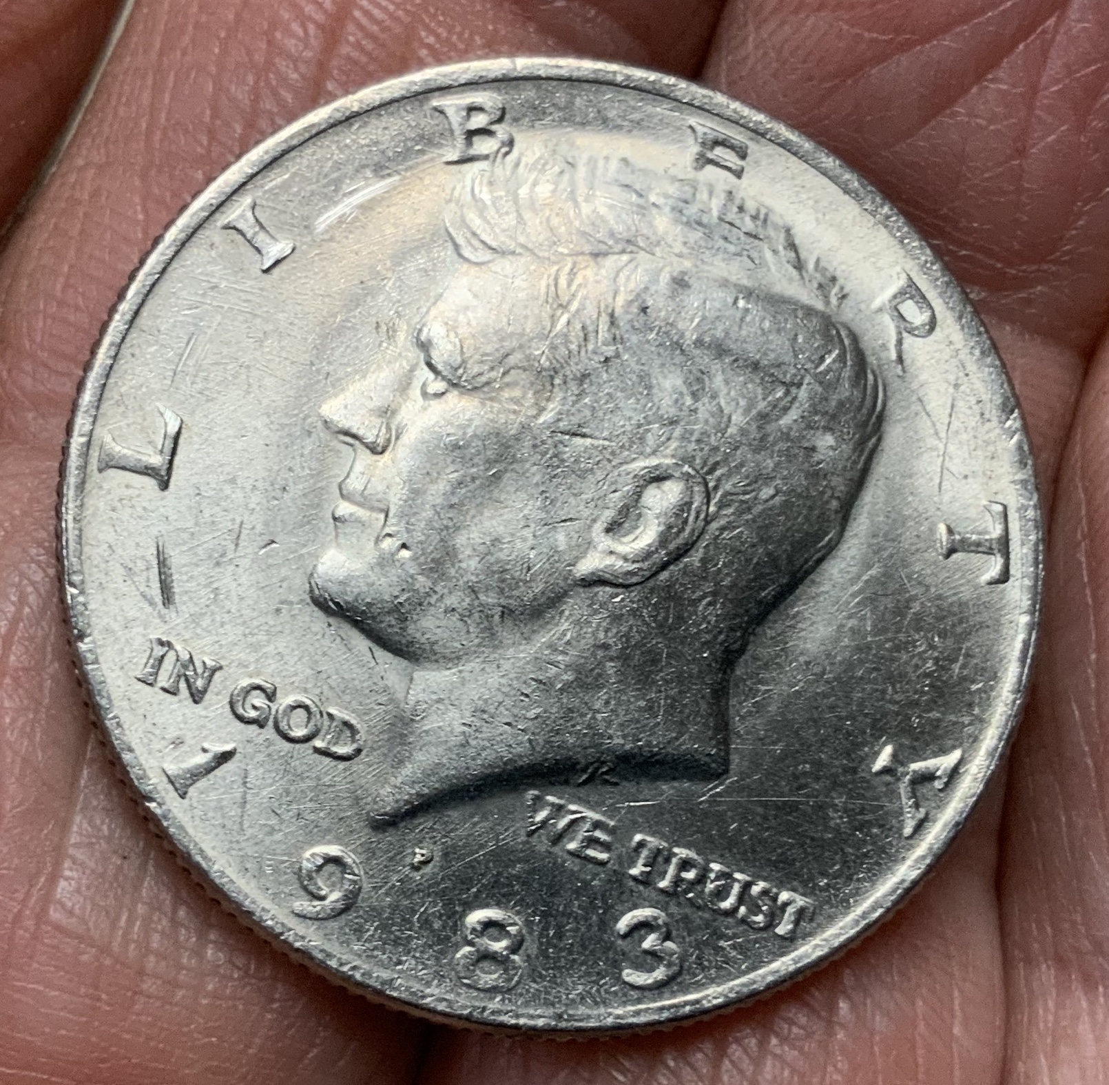 Once or twice a month I’ll buy a box of half dollars. I turn them over to my wife who loves to look for silvers. She’s pretty lucky finding them, her oldest being a 1907 Barber half. Once she’s done I check them out for No FGs, weak strikes or anything that may catch my eye and fancy. One thing I regularly check is the word LIBERTY on the obverse. As you know the letters E and R are partially embedded into Kennedy’s head but occasionally I find them where they appear separated from Kennedy’s scalp. The separations are usually slight with many more Es than Rs and only occasionally both letters. Often to see the gap you have to look at the coin from the top. Well it was a pleasant surprise to see this coin where not only both coins are freed but never have I seen such a large gap. nothing really special, I’m sure, but definitely one I’ll keep.