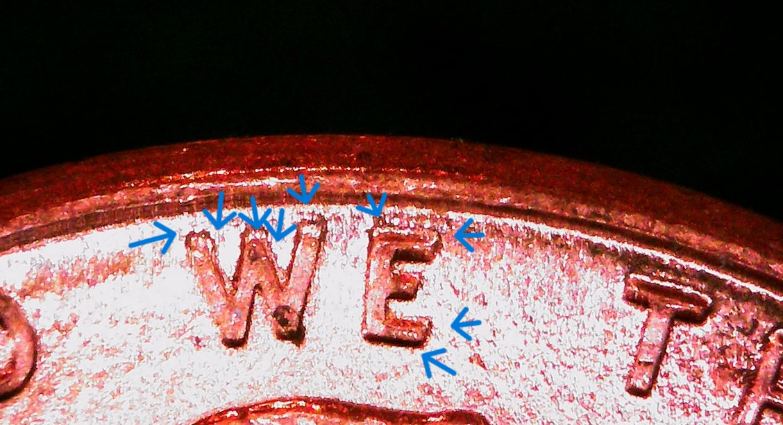 I agree…results from worn dies. The obverse perimeter ridge ring is a dead giveaway. Here’s a tip to improve your lighting and cut the glare on your pix: Looks like you have 2 light sources from 9 o’clock and 3 o’clock (9k and 3k, as they say in the biz)…try from 10k and 2k, use equal power bulbs and keep them 40 watts or less. To cut glare, try diffusing the light. An easy way to do this is to bounce your light source off white card stock/copy paper from behind or off to the side. Then just experiment with light strengths…imo…Spark