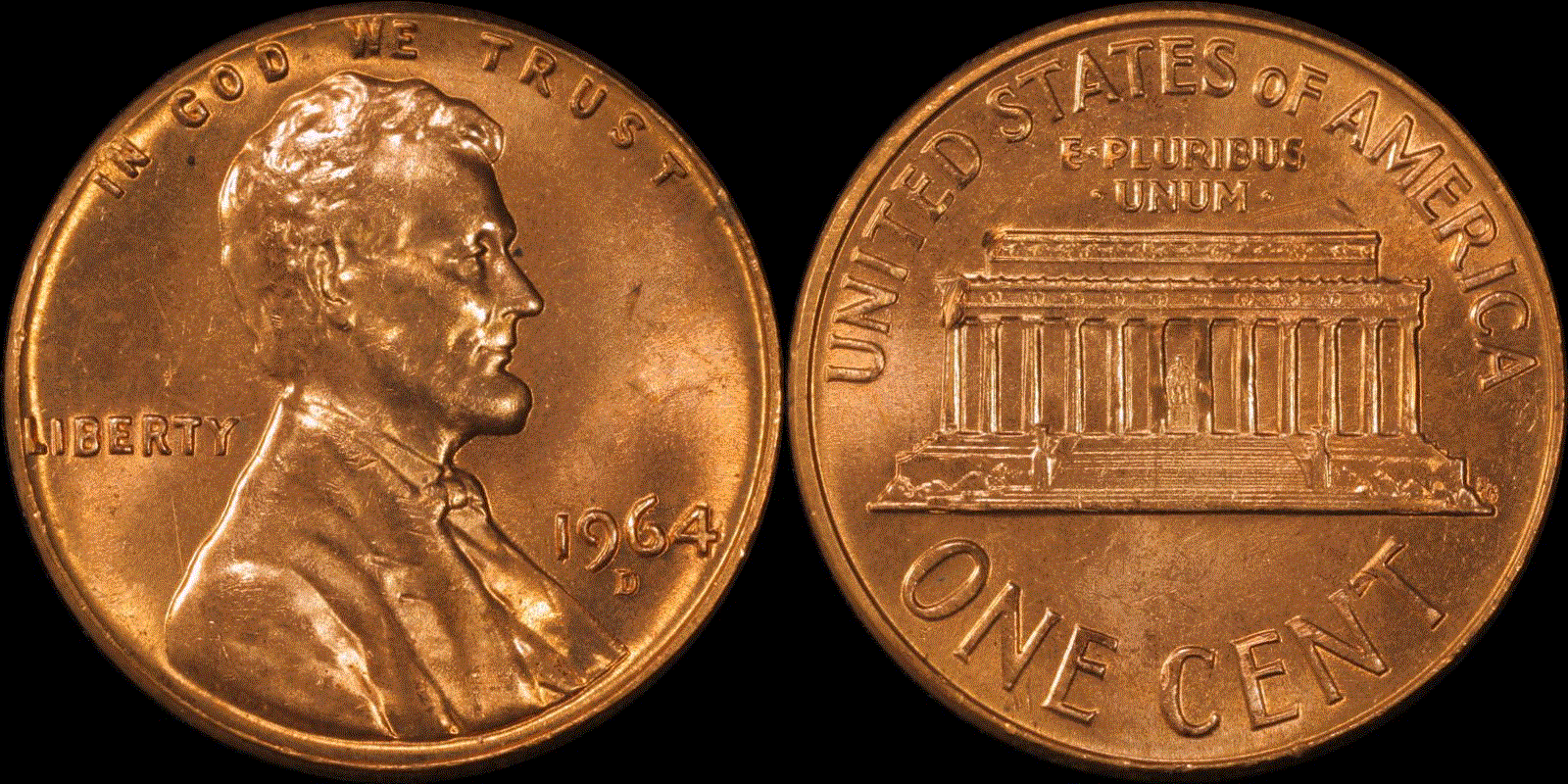 I replaced the 1964-D shown earlier with this one, because of damage to the reverse of the original.