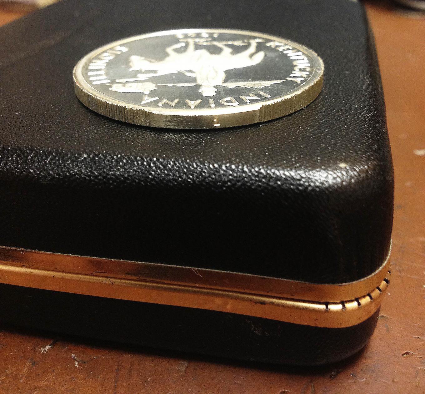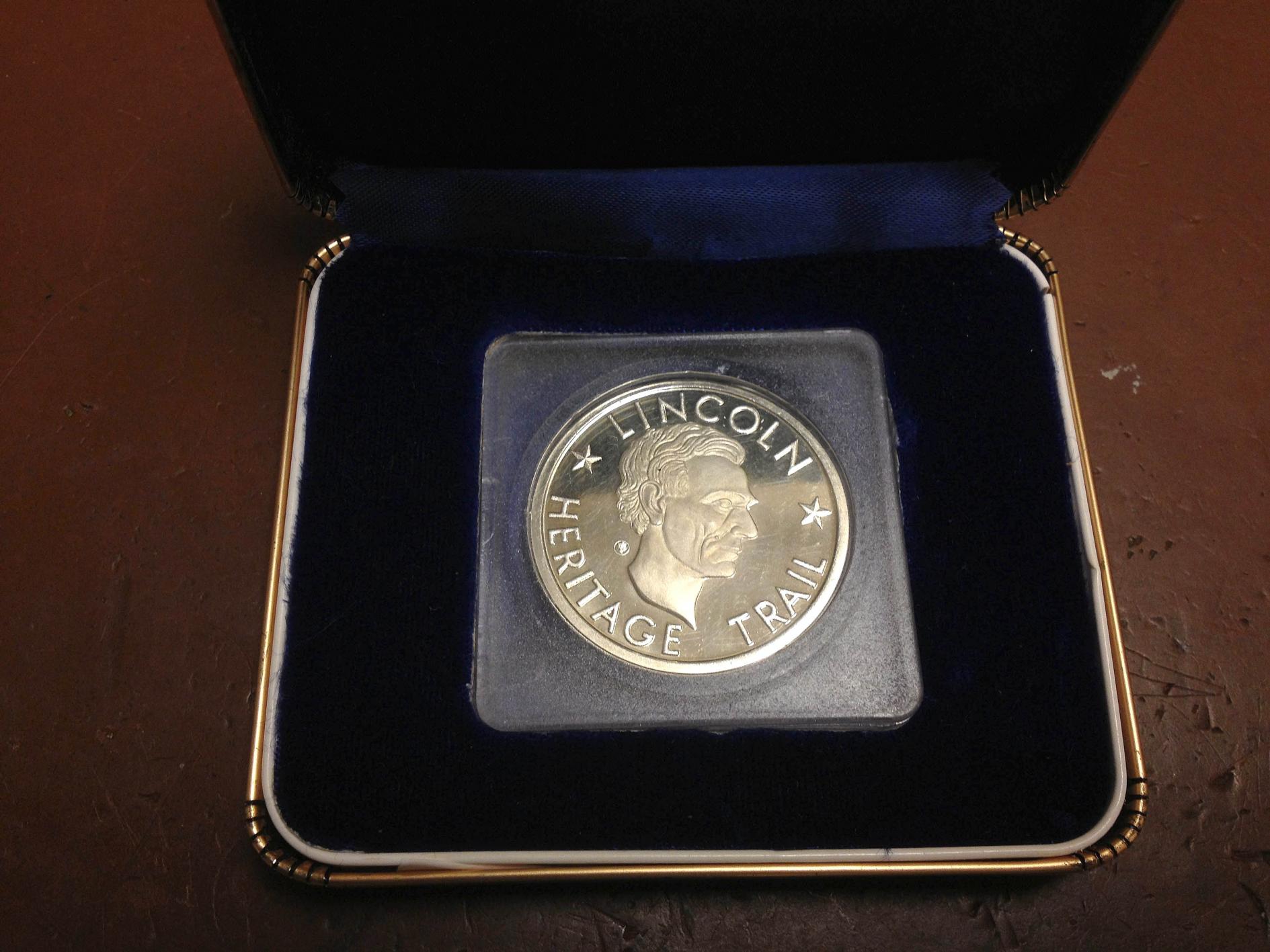 This is a pretty common medal issued in 1969 by Indiana, Illinois, and Kentucky to commemorate the finishing of the Lincoln heritage trail. These were popular as I still see them all the time here in the shop pretty often... they were made in silver and bronze. All of the silver pieces were numbered and from the numbers I have seen they made several thousand pieces. This however... is the first. I've had this for a couple of years and I just ran across it while cleaning. I have no idea if it was awarded to someone... and no idea who that would have been.. but I thought it was neat and wanted to share.
