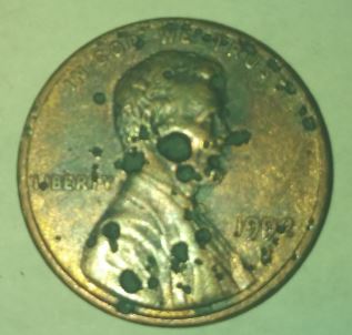 Many 1982 and newer cents are based on a Zinc core with a very thin copper plating. What happens many times is the zinc starts to corrode and all sorts of things happen to the surface. The coins tend to eat themselves over time. So if you see anything "odd" or "weird" with a 1982 or newer cent's surface you can mostly relate it to that.