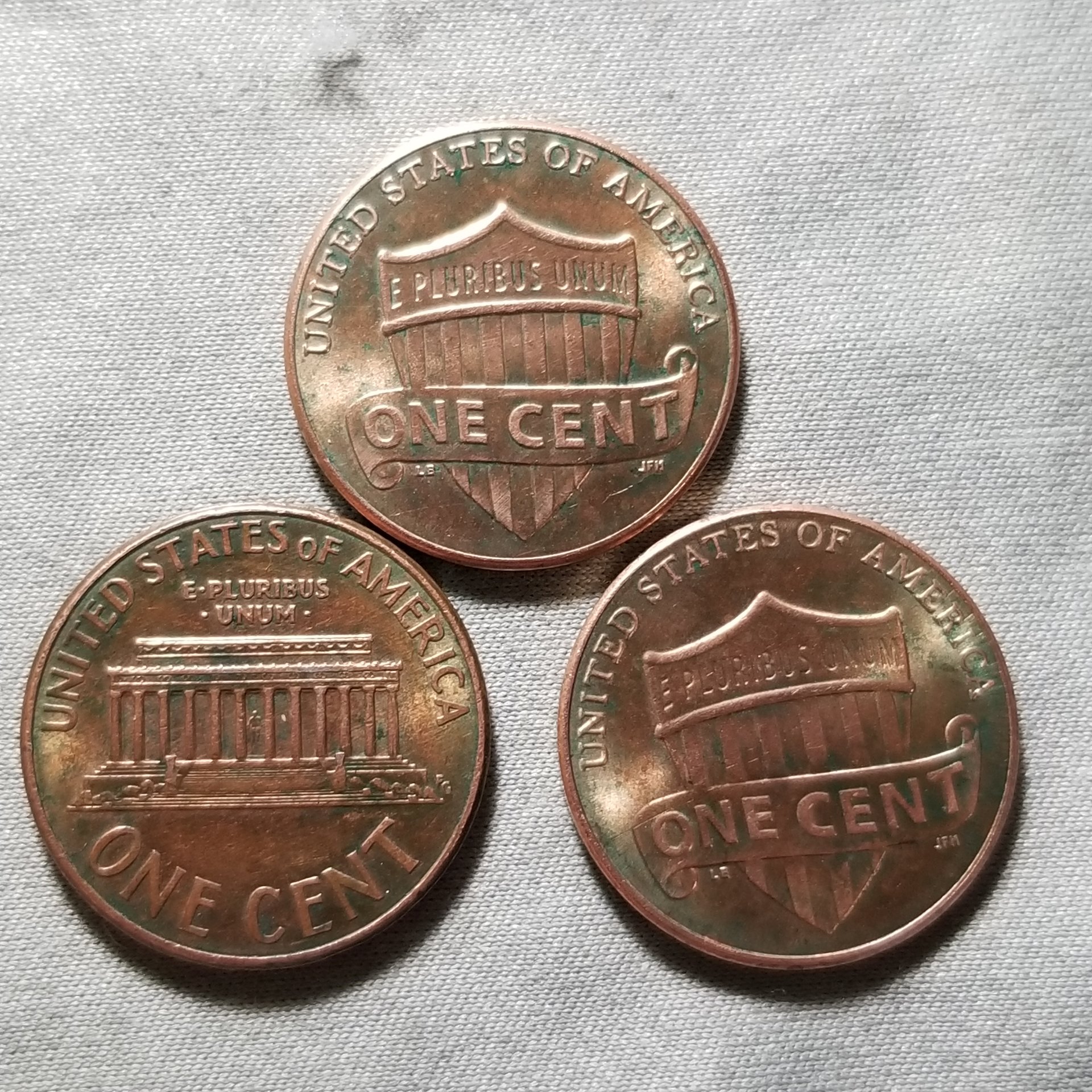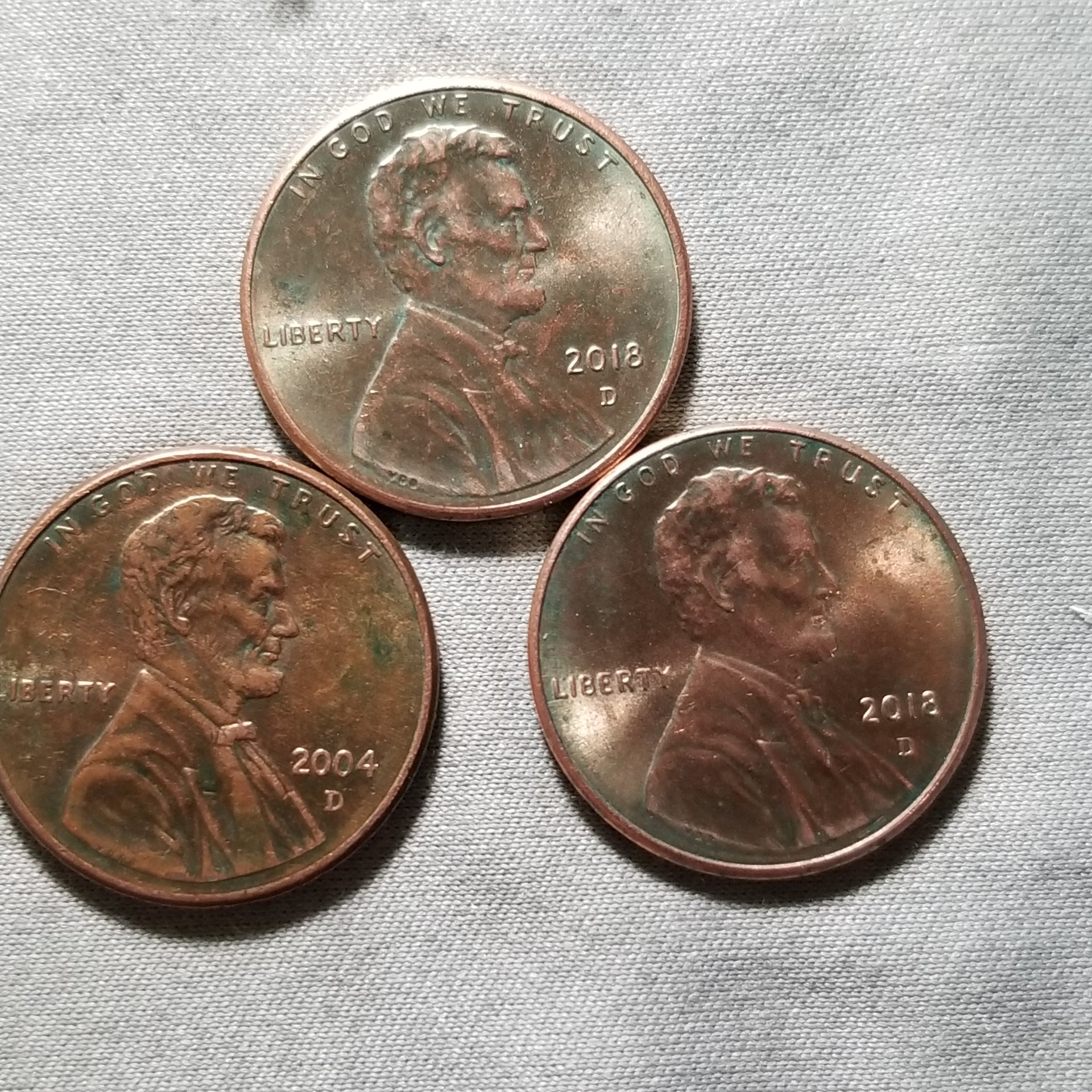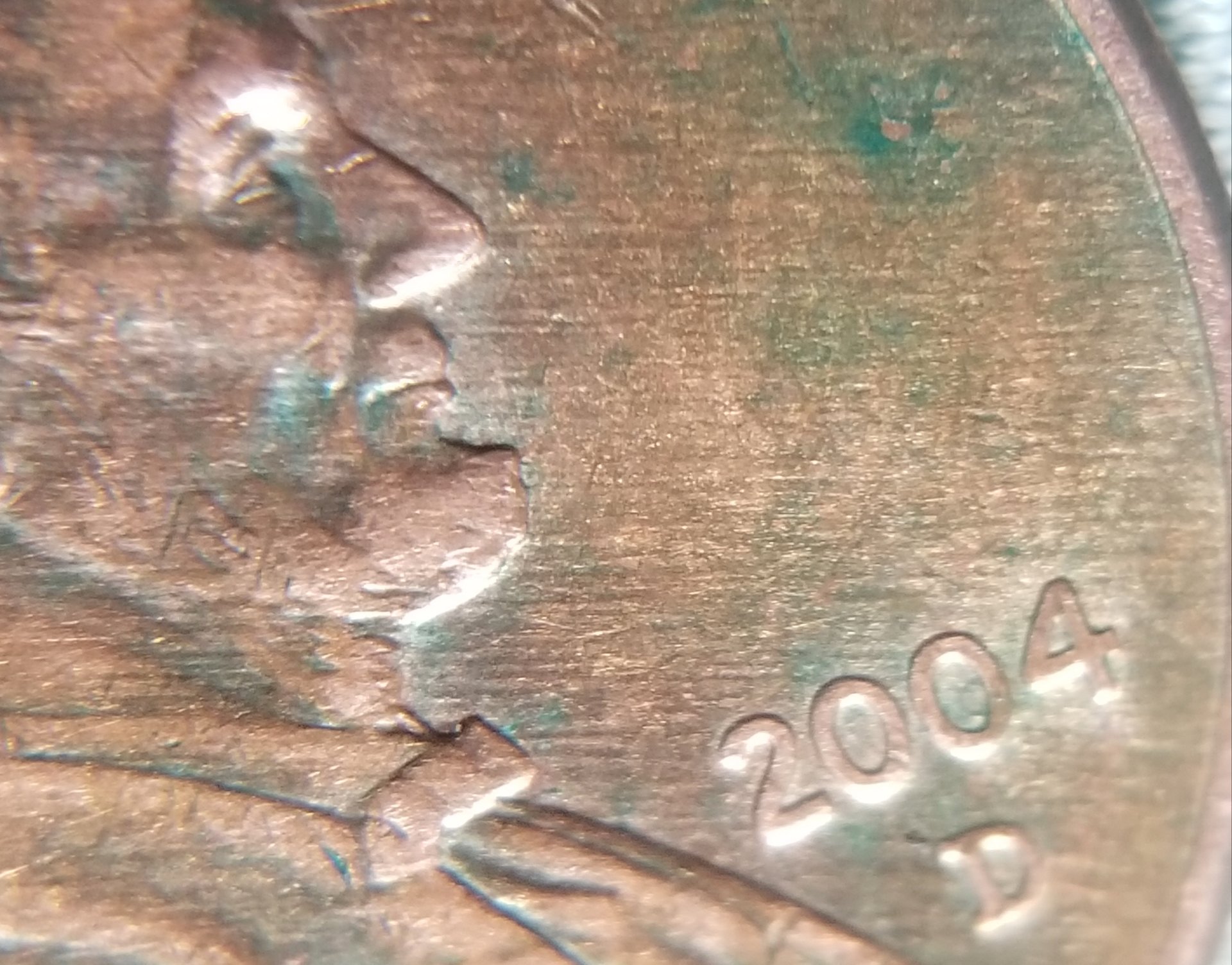 Hey everyone, I have only come across these three that have this particular blue green that I at first thought was zinc rot. But the color is also showing on edge of each coin. Is discoloring from alloy mix or is there some other reason this can occur. The 2004 has this pattern on both obverse and reverse and wondering if this is a polishing cloth strike through or is it PMD? Thanks again for any information.