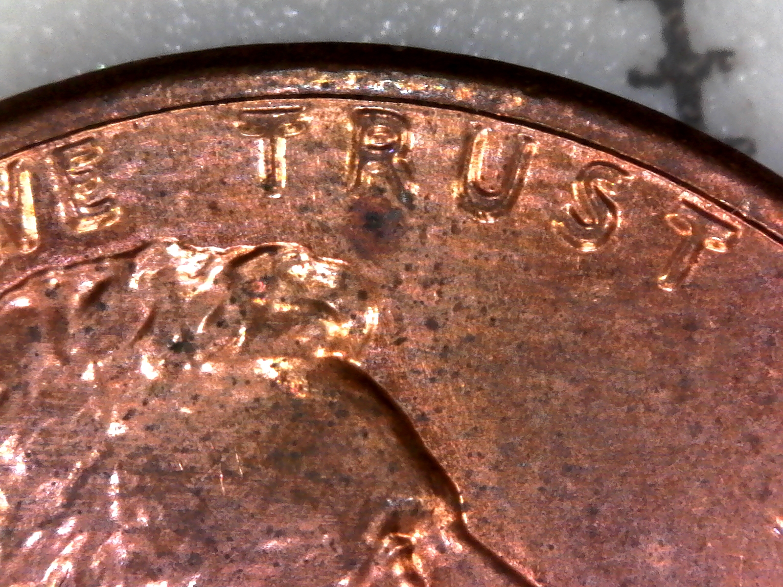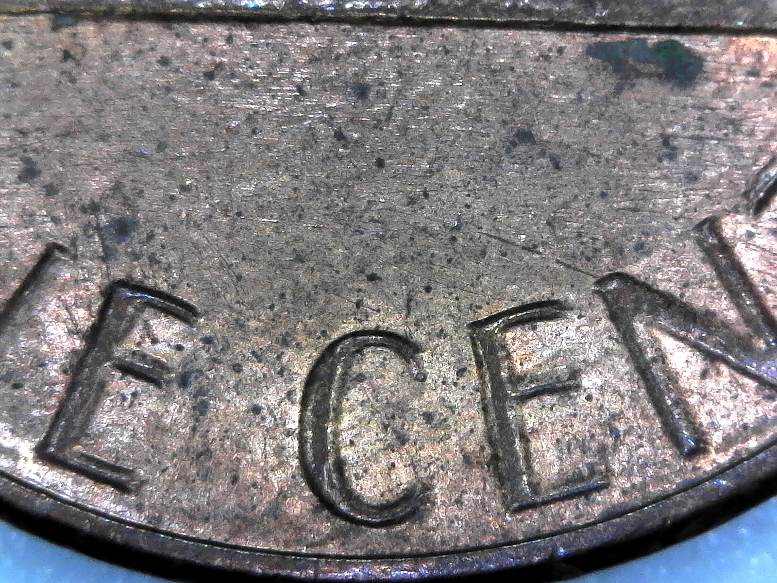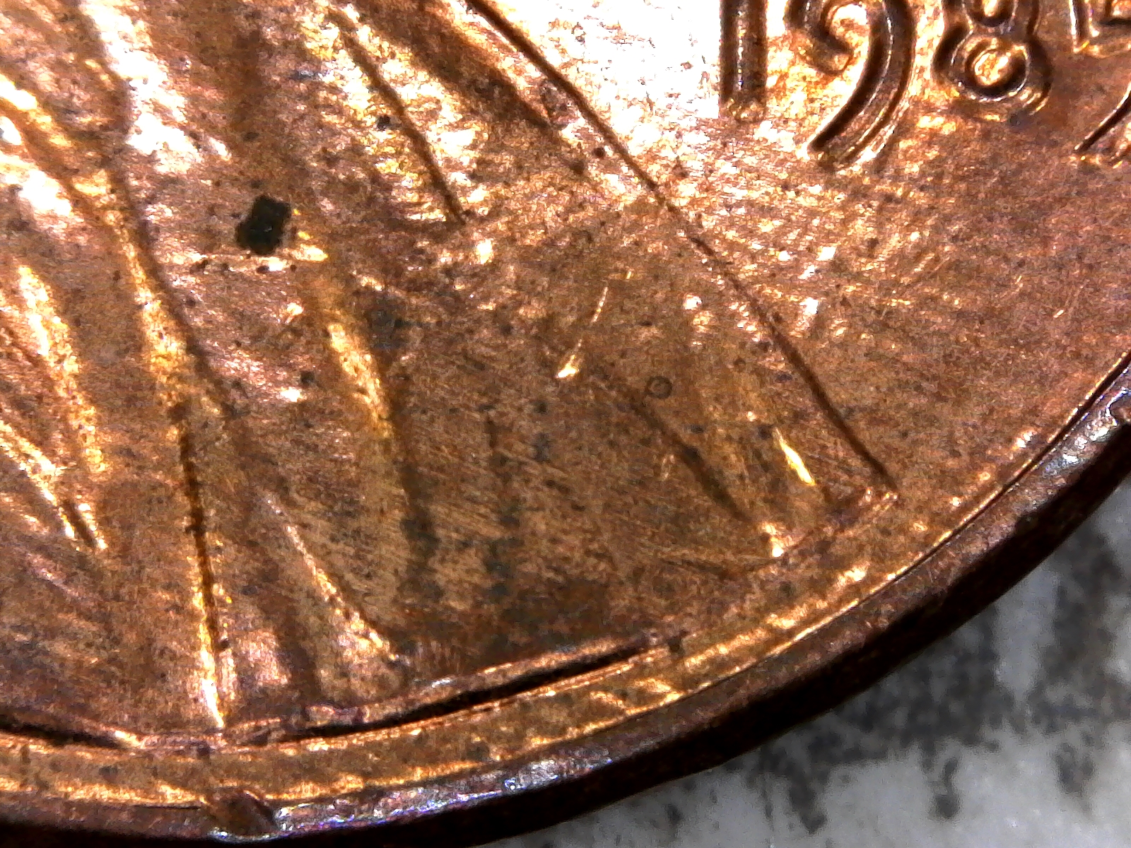 So I found this coin last night hunting through a 5 gallon water jug full of pennies. I think it may match up with the 1985 DDO-001 listed here: http://varietyvista.com/01b LC Doubled Dies Vol 2/1985PDDO001.htm The die scratches on the lower reverse seem to match up, particularly the one coming off the top left portion of the N in CENT. Can anyone with more experience confirm that this is correct or if I'm losing my mind. I apologize for the large number of pics and glare in some of them. I really need to figure out the lighting thing better or invest in a better scope. As always, thanks for any feedback.