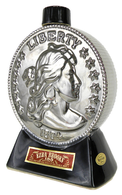 Caught my eye at Kolbe and Fanning Booksellers website. Ezra Brooks Distilling Company, Heritage China: Genuine Fired Platinum type, 1969. Ezra Brooks is still (and distill) in operation as a whisky maker. Sorry, already sold, and yeah, it was emptied long ago by a happy collector. Now, if Glenlivet or Ledaig would do something similar with a Scottish coin, then … Cal