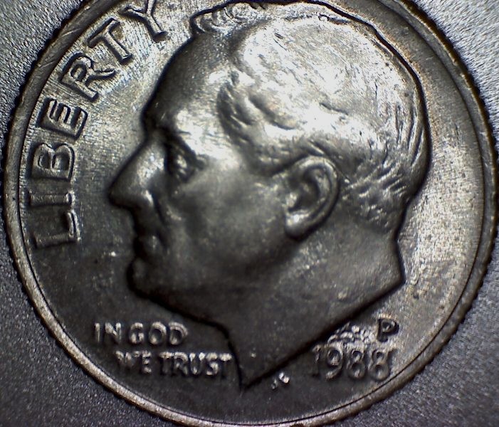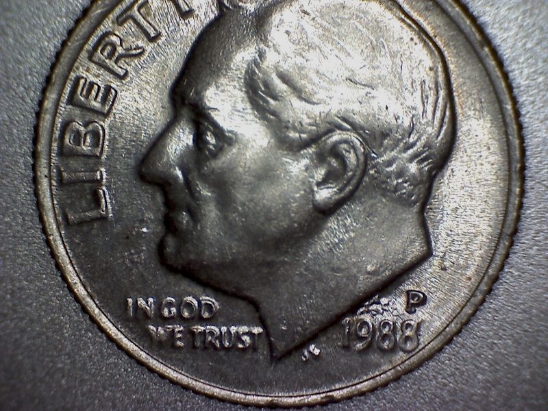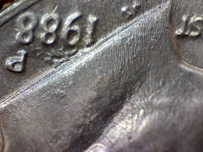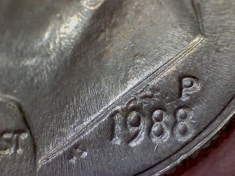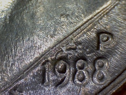 1988 P dime, I do not know what it is above the date and in one picture, it looks like a small "s" on the neck.